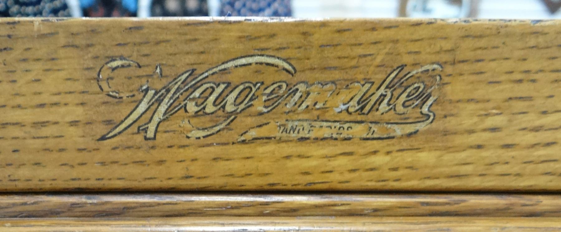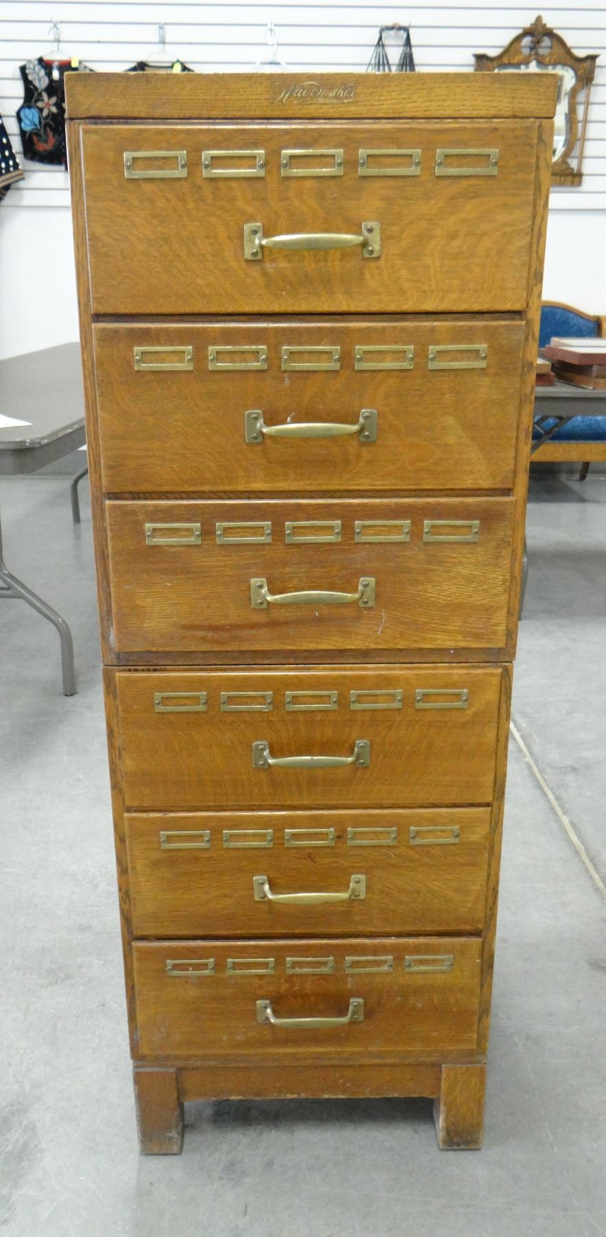 Oak file cabinet, 6 drawer, vertical, 50" h x 18" w x 20" d, Wagenmaker marked, drawer are 6 ½" x 16
