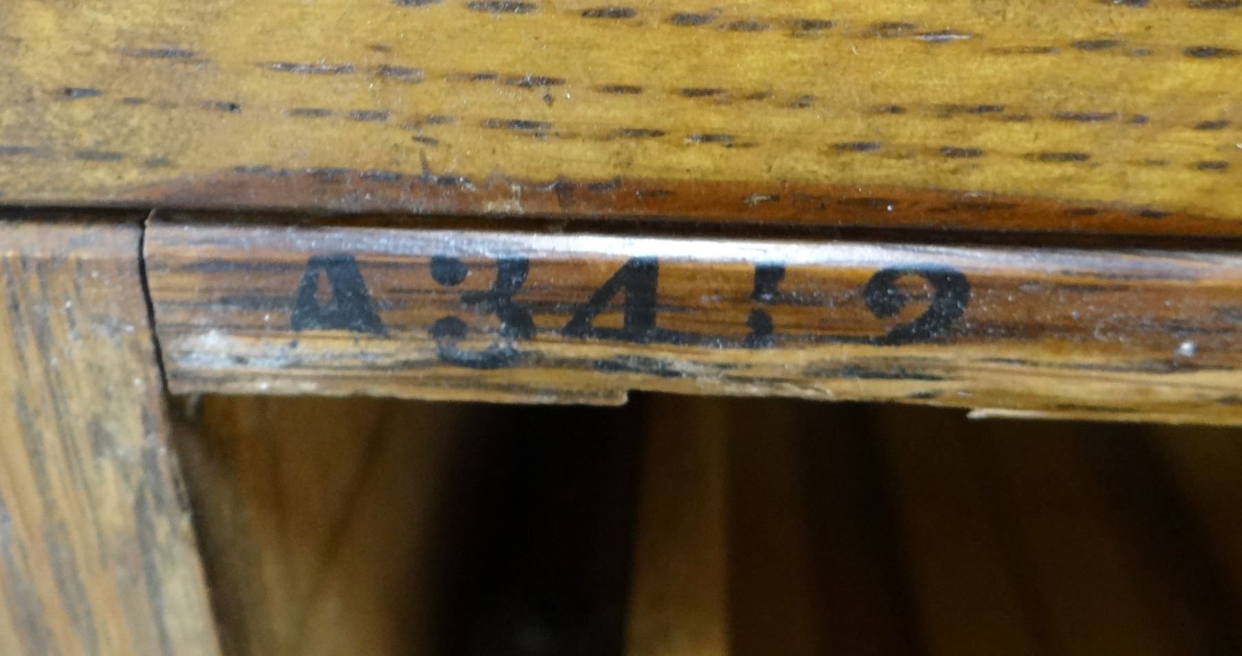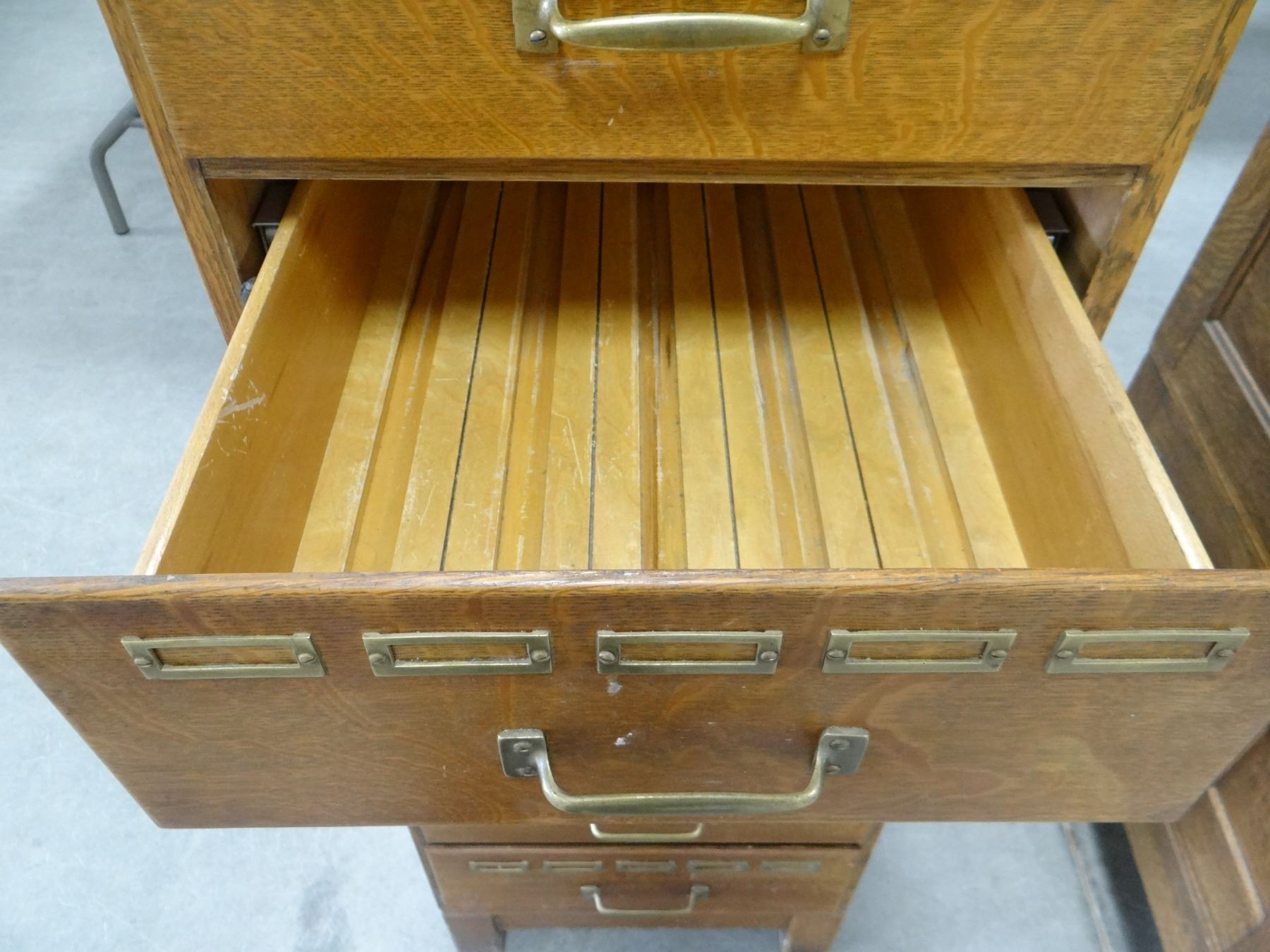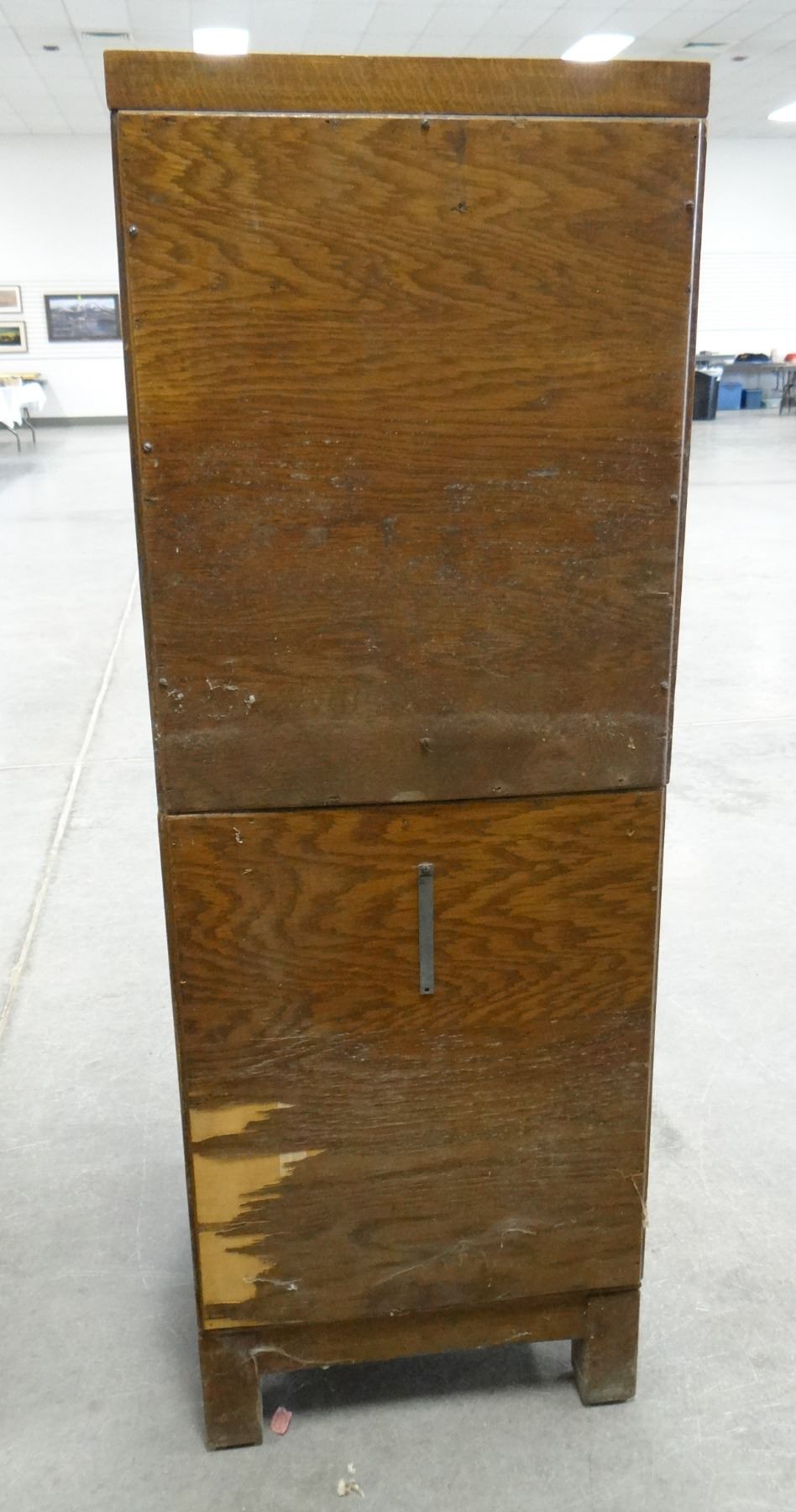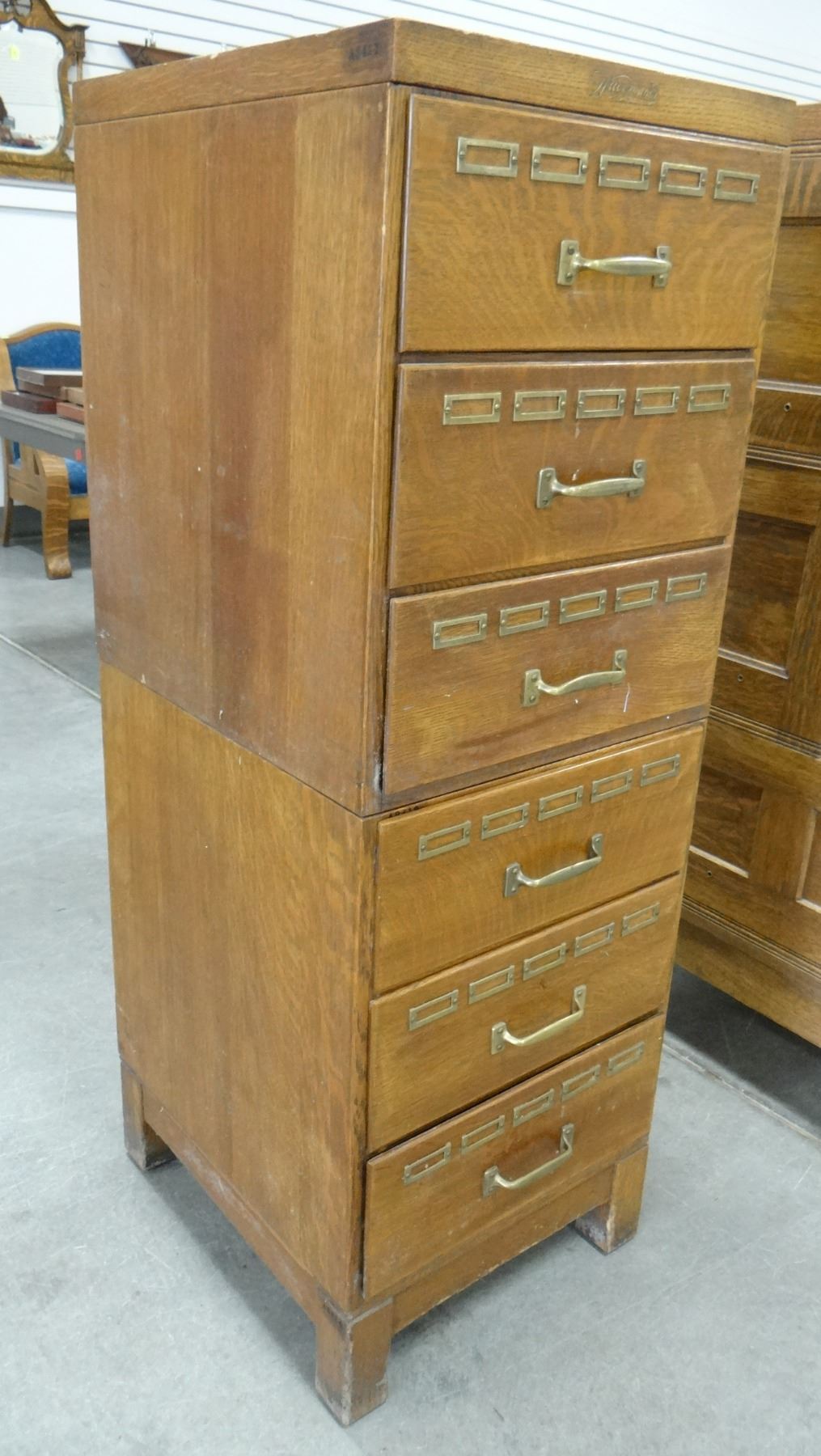 Oak file cabinet, 6 drawer, vertical, 50" h x 18" w x 20" d, Wagenmaker marked, drawer are 6 ½" x 16 ½" w