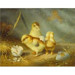 Oak framed Victorian coloured print of chicks hatching, 30cm x 25cm…