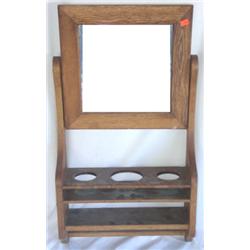 Oak hanging wall shelf with mirror back. Measures 32 1/2" tall, 18 1/4" wide.