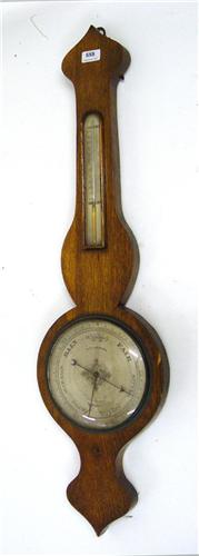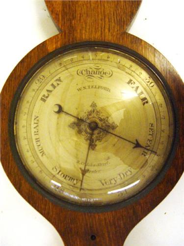 Oak wheel barometer with thermometer panel, the dial inscribed W.N.TELFORD
