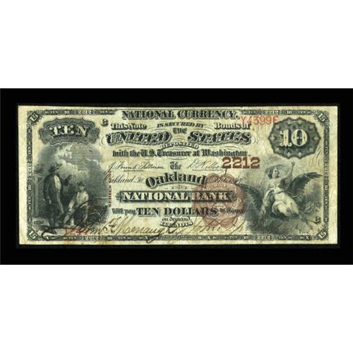<B>Oakland, IL</B></I> - $10 1882 Brown Back Fr. 487 <B>The Oakland NB</B></I> Ch. # 2212<BR> A couple of pinholes are noticed at left on this well signed example. <B>Fine-Very Fine.</B></I><BR><BR><b>Shipping:</b> Coins & Currency (<a target="_blank" href="http://www.heritageauctions.com/common/shipping.php">view shipping information</a>)