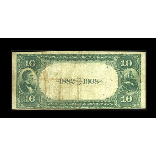 <B>Oakland, MD</B></I> - $10 1882 Date Back Fr. 545 <B>The First NB</B></I> Ch. # (E)5623<BR>If you are looking for a $10 Second Charter Date Back from here, your choice is limited to this <B>Fine++</B></I> note, the only example of its type and denomination documented to date in the census. Only one Maryland collector will be able to experience the pride of owning a $10 Date Back from here after tonight. Bid liberally to ensure success.
