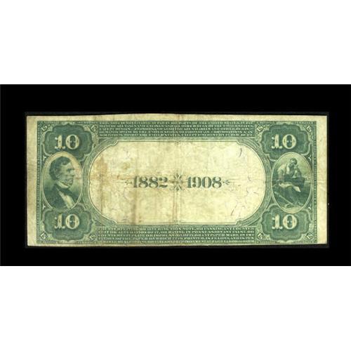 <B>Oakland, MD</B></I> - $10 1882 Date Back Fr. 545 <B>The First NB</B></I> Ch. # (E)5623<BR> If you are looking for a $10 Second Charter Date Back from here, your choice is limited to this <B>Fine++</B></I> note, the only example of its type and denomination documented to date in the census. Purple signatures can still be seen. Only one Maryland collector will be able to experience the pride of owning a $10 Date Back from here after tonight. Bid liberally to ensure success.<BR><BR><b>Shipping:</b> Coins & Currency (<a target="_blank" href="http://www.heritageauctions.com/common/shipping.php">view shipping information</a>)