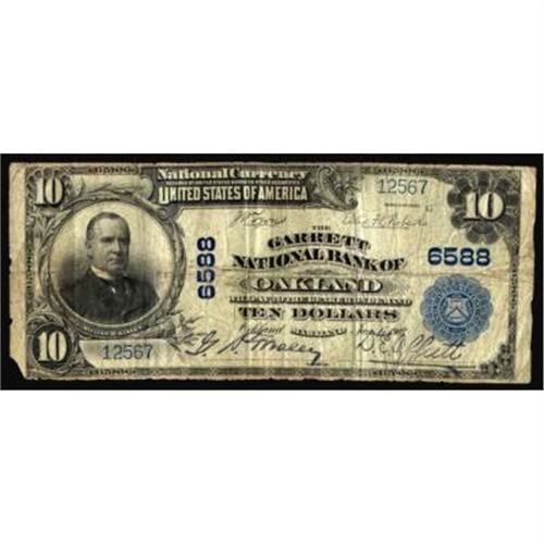 Oakland, MD. $10 1902 Plain Back. Fr. 624. The Garrett NB. Charter #6588. Very Good.