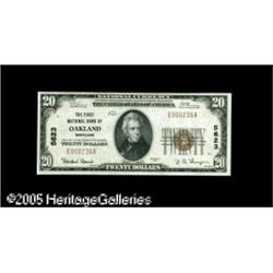 <B>Oakland, MD</B></I> - $20 1929 Ty. 1 <B>The First NB</B></I> Ch. # 5623<BR>Evidence of a few light folds and handling indications can be detected only on close examination. This <B>About Uncirculated</B></I> example otherwise gives every appearance of being fully uncirculated. Lot:16893