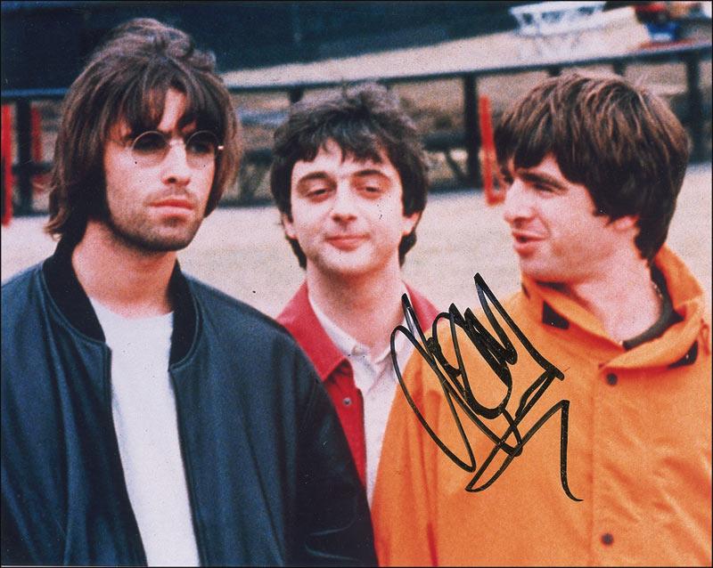 Color glossy 10 x 8 photo of the Gallagher brothers, signed in black felt tip by Liam Gallagher. In fine condition, with a few light bends and surface marks.