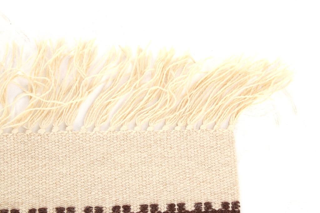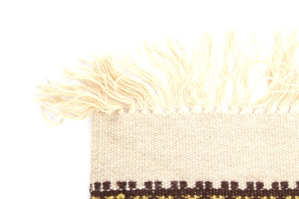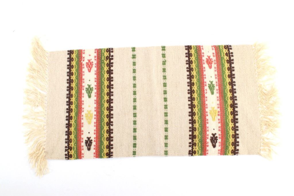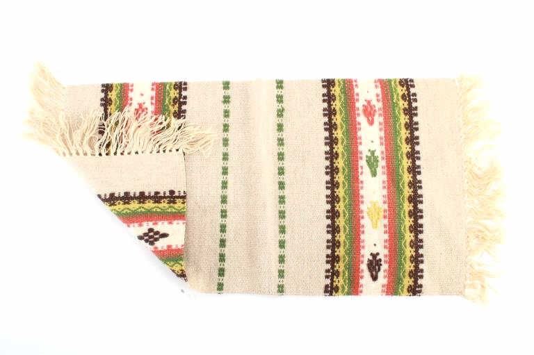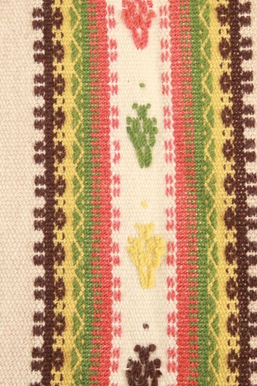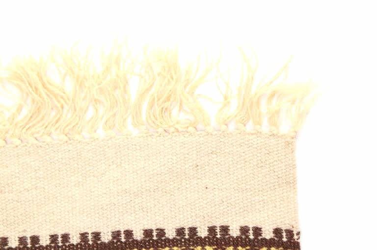 Featured in this lot is this Oaxaca Zapotec banded Saltillo sampler rug circa 1960's. The rug features a wonderfully and professionally crafted wool construction that shows banded design built from geometric patterns of brown, yellow, red, and light green coloration set to a cream field. The condition of this Saltillo rug is good with no obvious signs of damage and shows good overall condition. The measurements of this rug are 29" x 12 1/4".