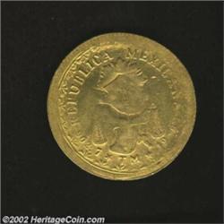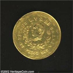 Oaxaca gold 60 Pesos 1916 struck over a Republic Hand on Book 8 Escudos, Head of Juarez in wreath with value below/Balance scales with fineness and date, type of KM755, 26.9 gm, rather crude XF with significant amounts of the undercoin visible. To confirm our belief that this is a legitimate striking, we sent this piece to the Number One Mexican authority in this country and he agreed that the coin is from the original dies, before they were impounded at the ANS, but the time of striking cannot be determined. An incredibly interesting and rare coin, and probably unique. Important notice: We expect to be auctioning lots at the rate of 200-250 per hour. Sometimes eBay Premier live bid software cannot keep up with that pace, so we strongly recommend that you place a realistic proxy bid now as insurance to avoid disappointment. Also please note that all Heritage/CAA lots purchased through eBay Premier carry a 20% Buyer's Premium. Please make sure you read the Terms and Conditions.