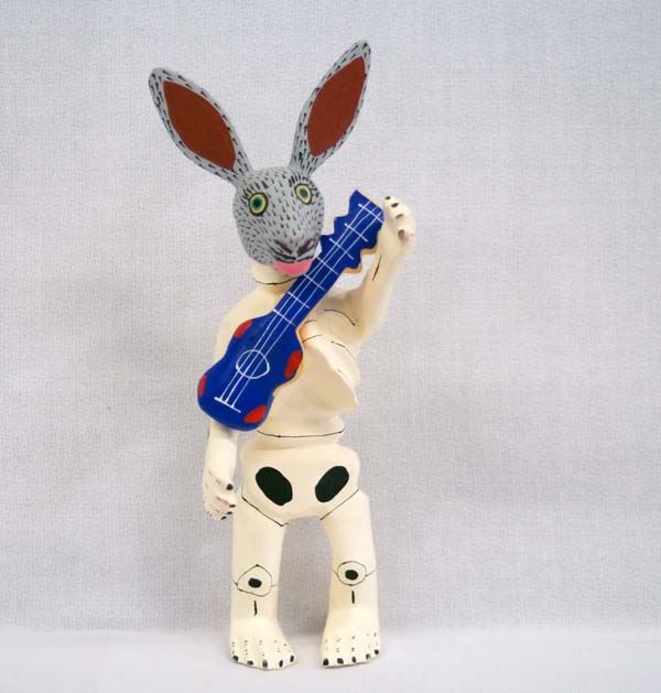 Oaxacan Alebrije Day of the Dead Rabbit, measures 7'' x 2.5'' x 1''
