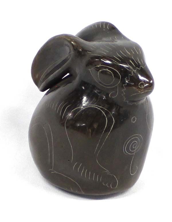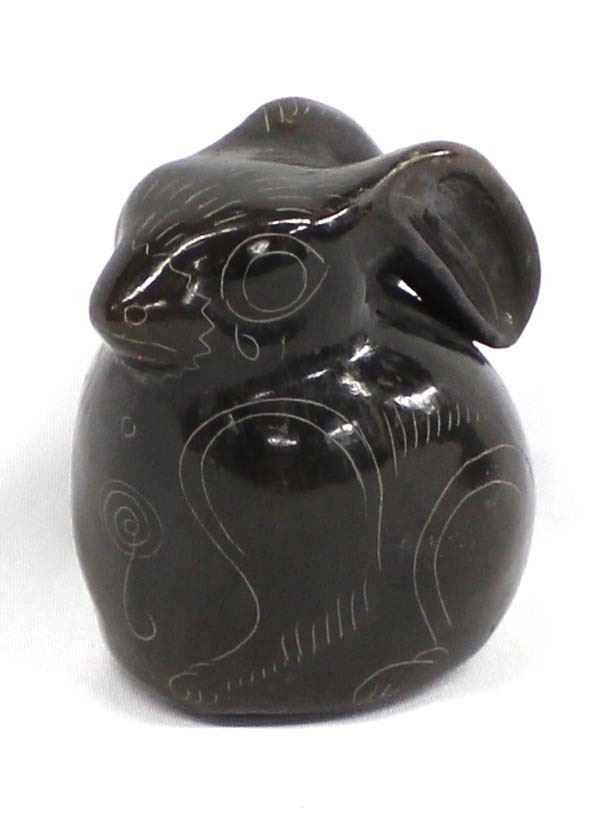 Oaxacan Black Burnished Pottery Rabbit, measures 3'' x 4.5'' x 4''