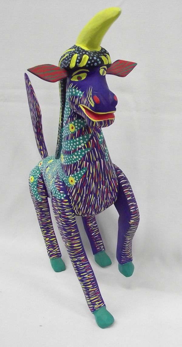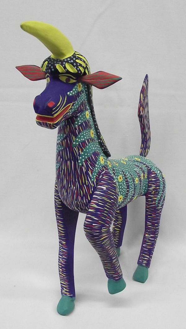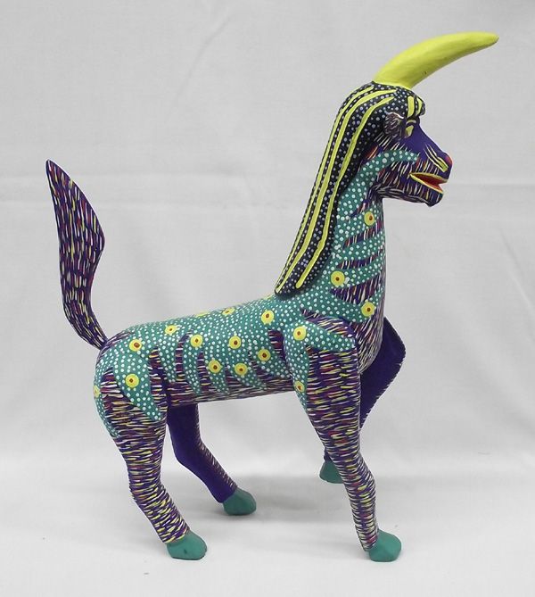 Oaxacan Mexican Carved and Painted Unicorn. 14''H x 12''L. Ears and tail remove for packing. Signed Pablo Sosa Hernandez.