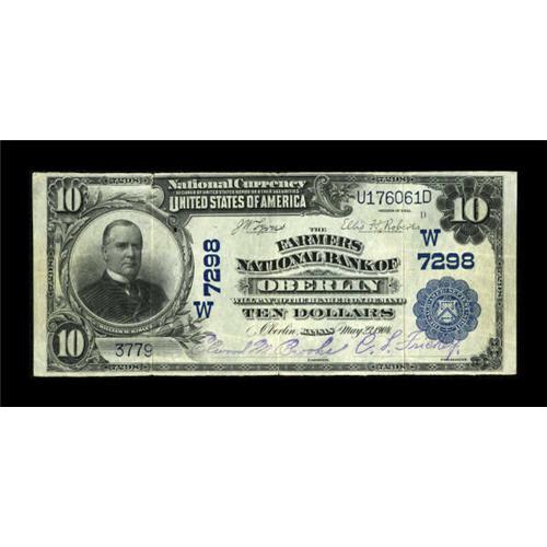 <B>Oberlin, KS</B></I> - $10 1902 Plain Back Fr. 624 <B>The Farmers NB</B></I> Ch. # (W)7298<BR> A better large note from a tougher Oberlin bank. <B>Very Fine,</B></I> with sharp purple signatures. Most of the wear can be found on the reverse of this example. <BR><I>From The J.S. Weber Collection.</B></I><BR><BR><b>Shipping:</b> Coins & Currency (<a target="_blank" href="http://www.heritageauctions.com/common/shipping.php">view shipping information</a>)