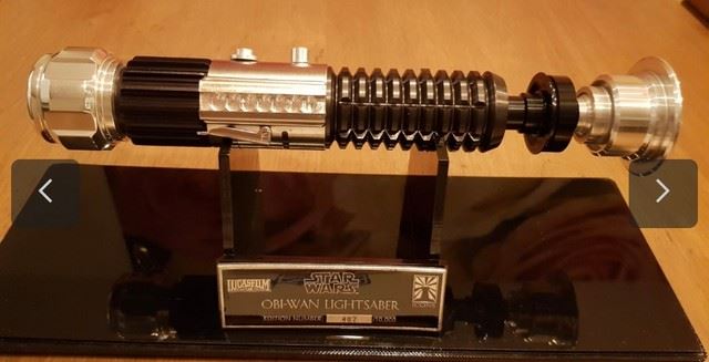 Obi Wan Light Saber switch from a former employee of ICONS (2"). The ICONS Obi-Wan Kenobi lightsaber replica from 1996 was one of the first, featuring a switch that was historically in accurate because the company lacked precise information about the original prop parts at the time. Later discoveries revealed that the on-screen switch was a tap-pet or selector (from a faucet knob), a detail that replica makers like Master Replicas and those who build using vintage or accurately machined parts have now replicated with greater accurracy.