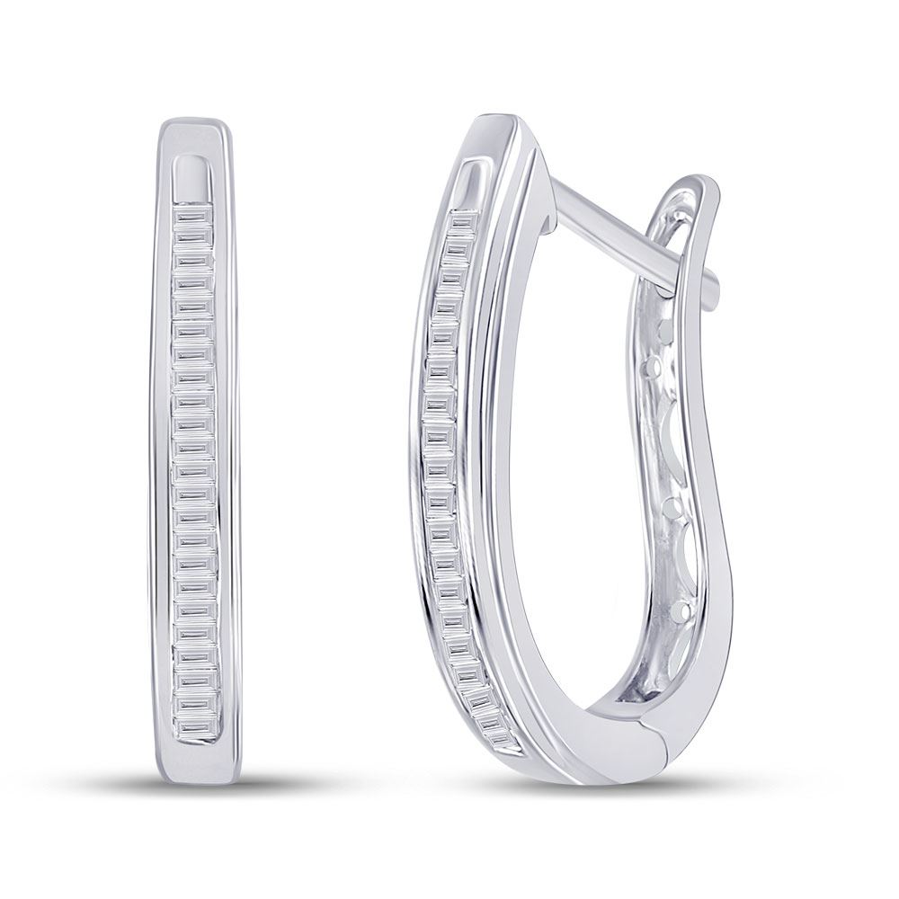 Sterling Silver Baguette Diamond Channel-set Womens Oblong Hoop Earrings 1/4 Cttw