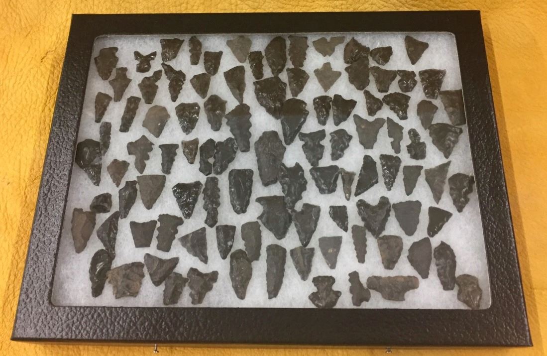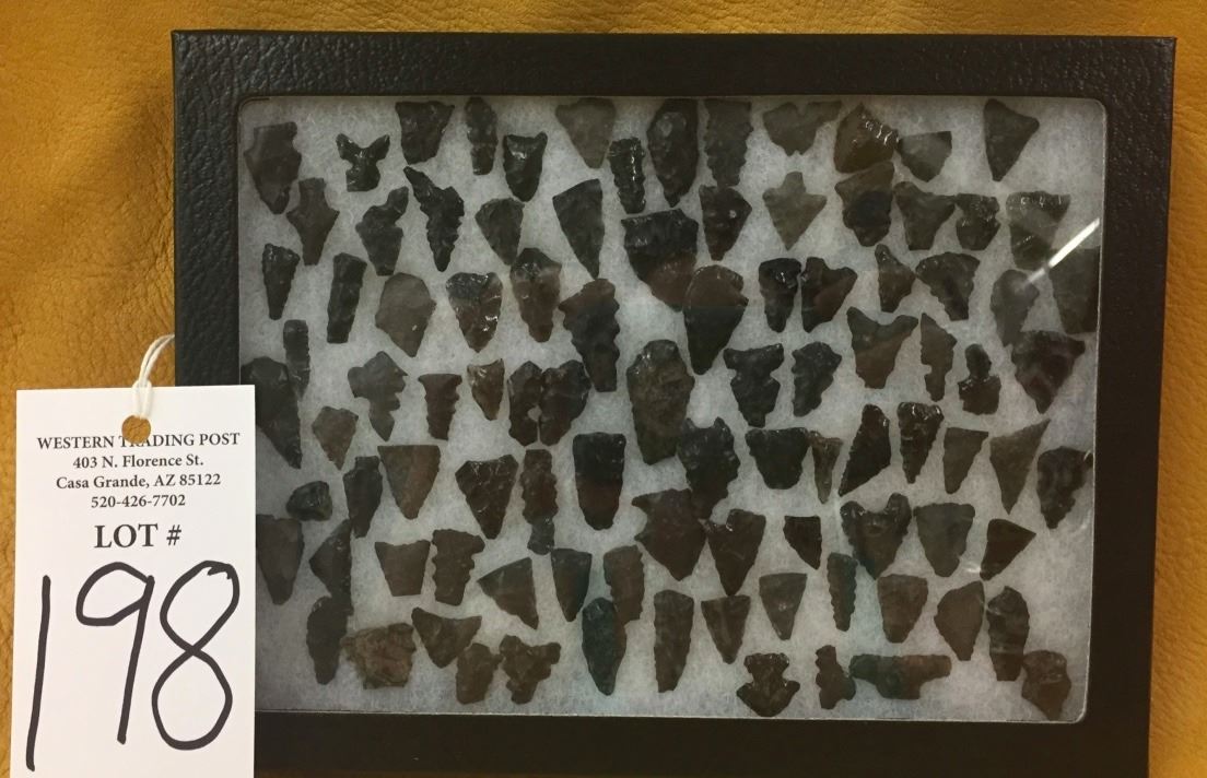 Maker: Unknown, but all are were found in AZ. Approx. Age: Prehistoric. Size: Shadowbox they are displayed in is 6” X 8”. Condition: Various. As found. Additional Info: Various prehistoric arrowheads in various conditions. Please look closely at the pictures - they are an important part of our description. Shipping: There will be a $7 handling / packaging fee for shipping this lot. The actual cost of postage will be added on top of that.