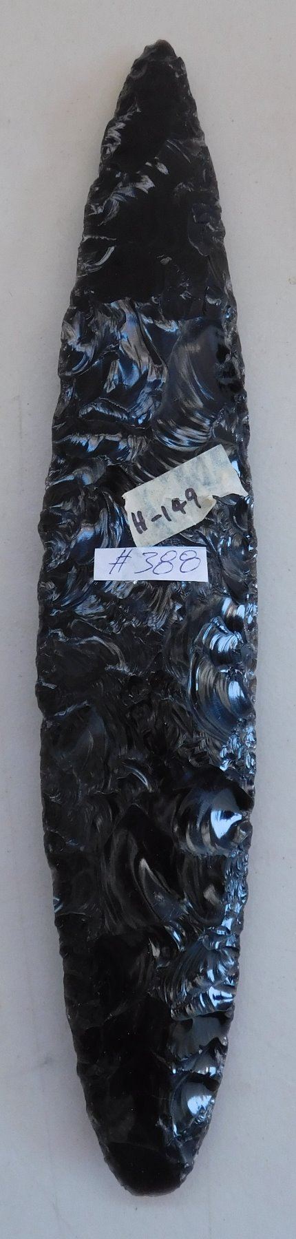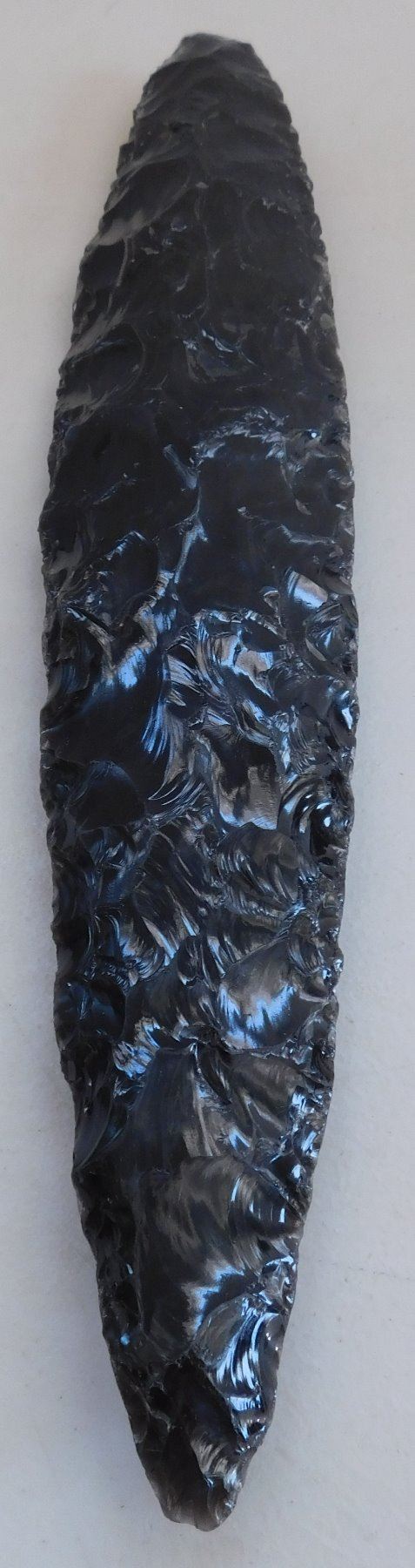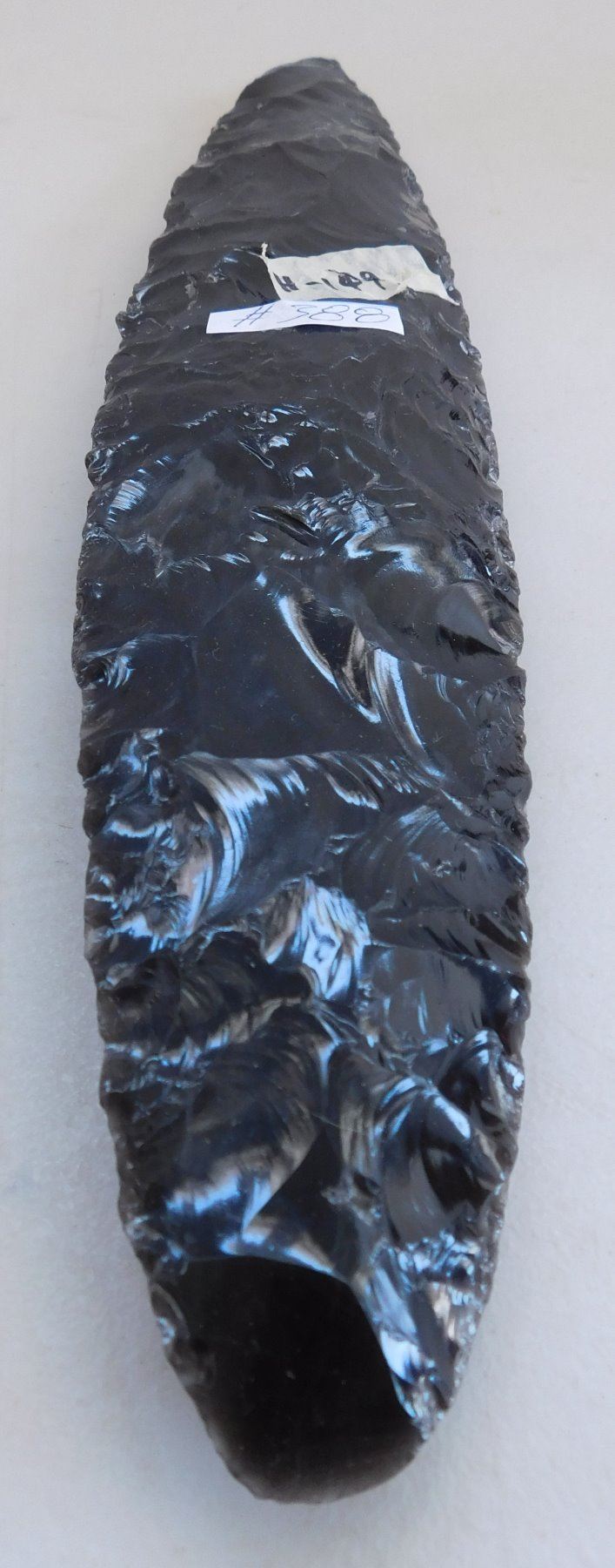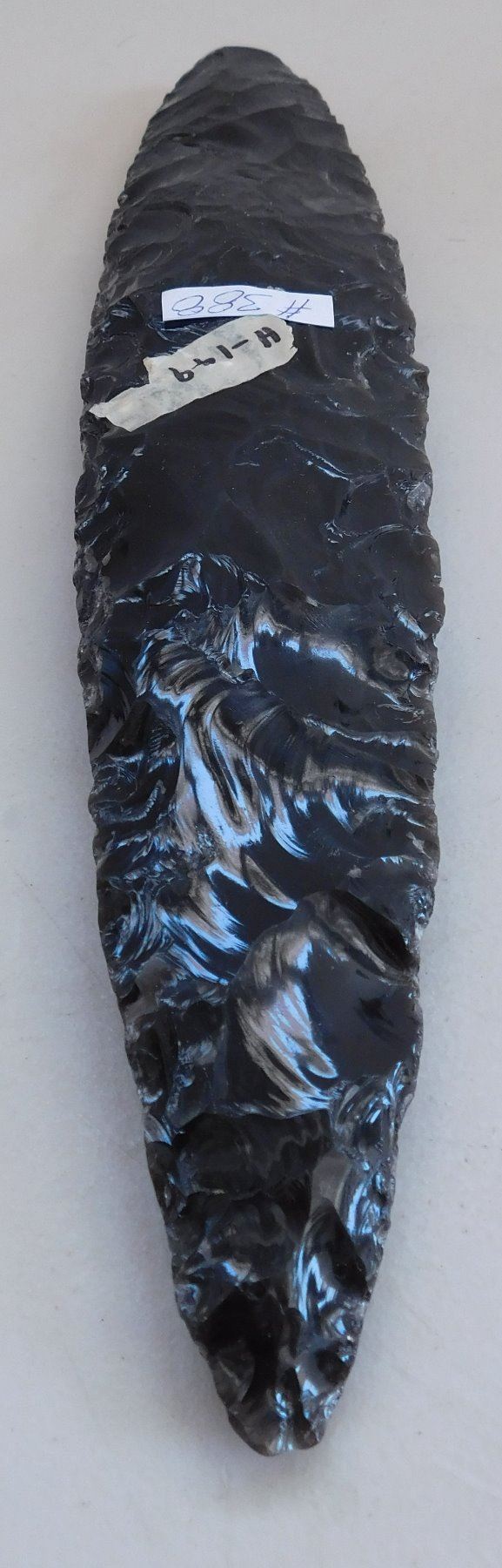 Obsidian Blade, archaic period. Made of obsidian stone, the item measures 15" x 2 3/4". Hupa, California. Large double-pointed treasure blade. Condition: Good, see images. Shipping: $35.50 w/insurance and signature.