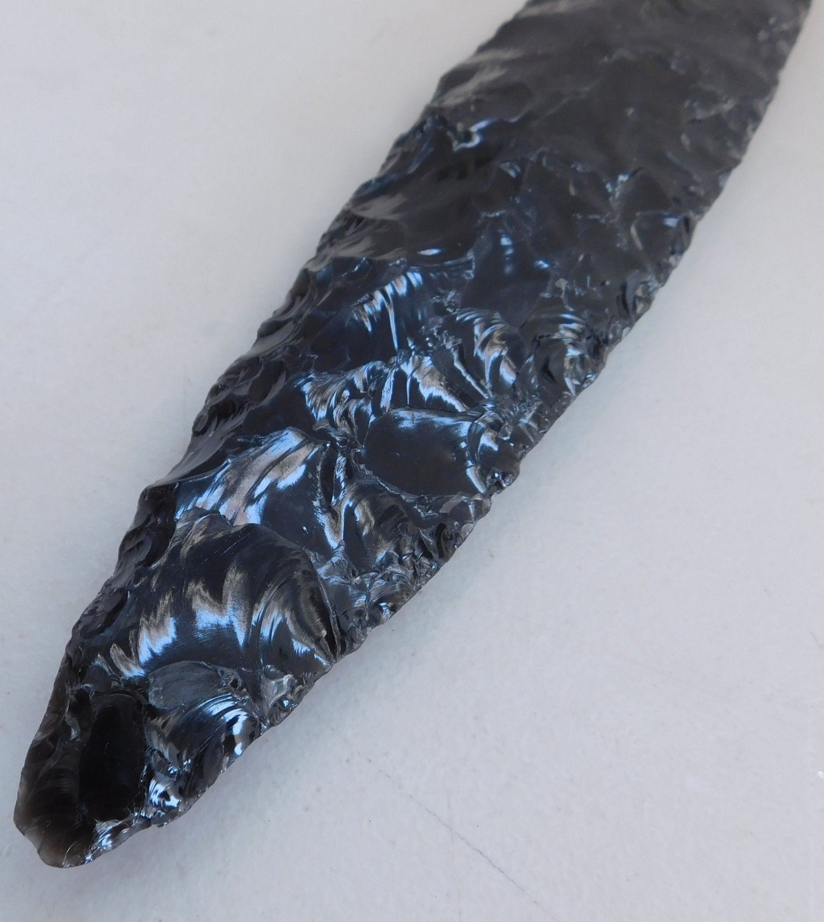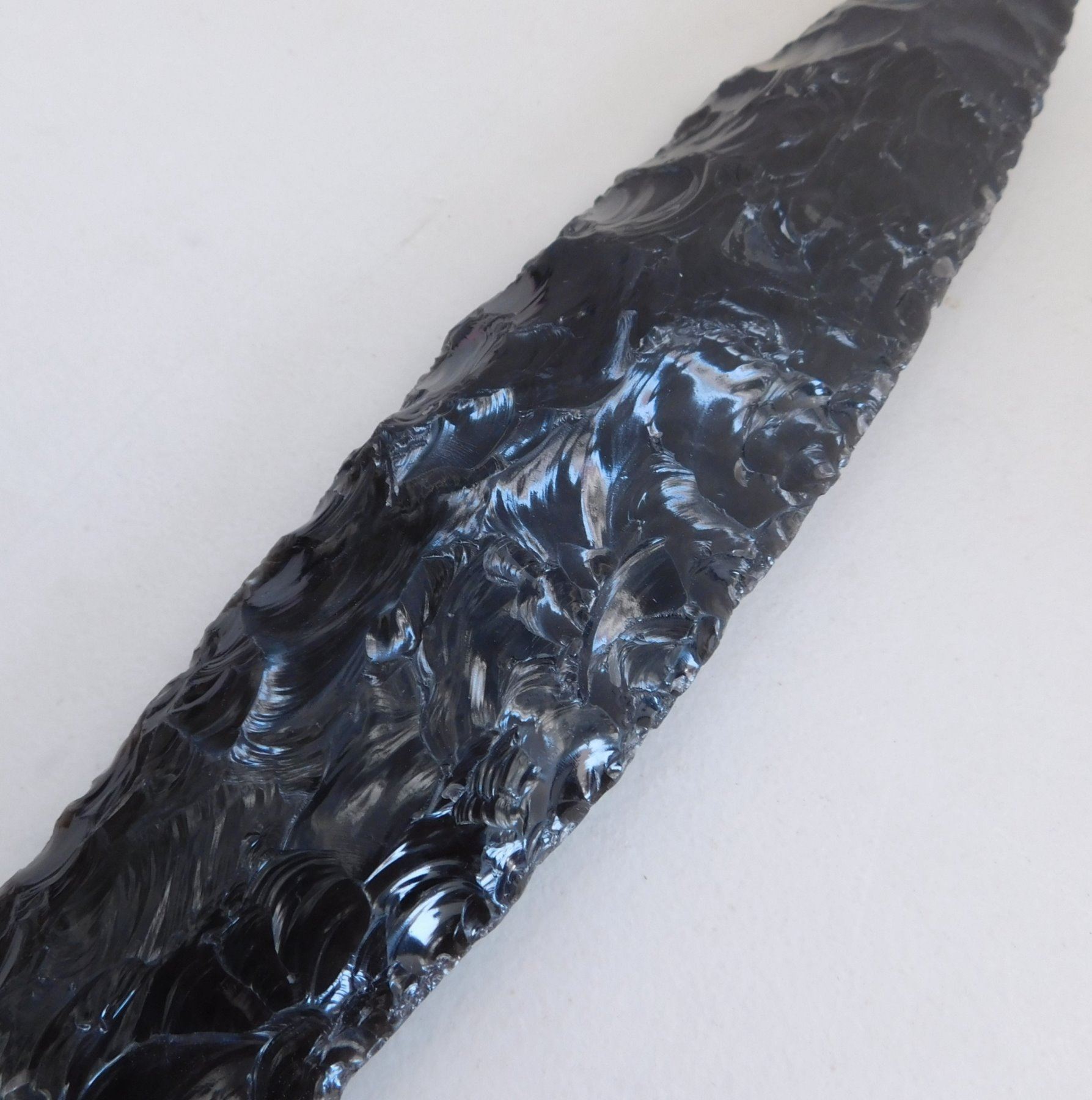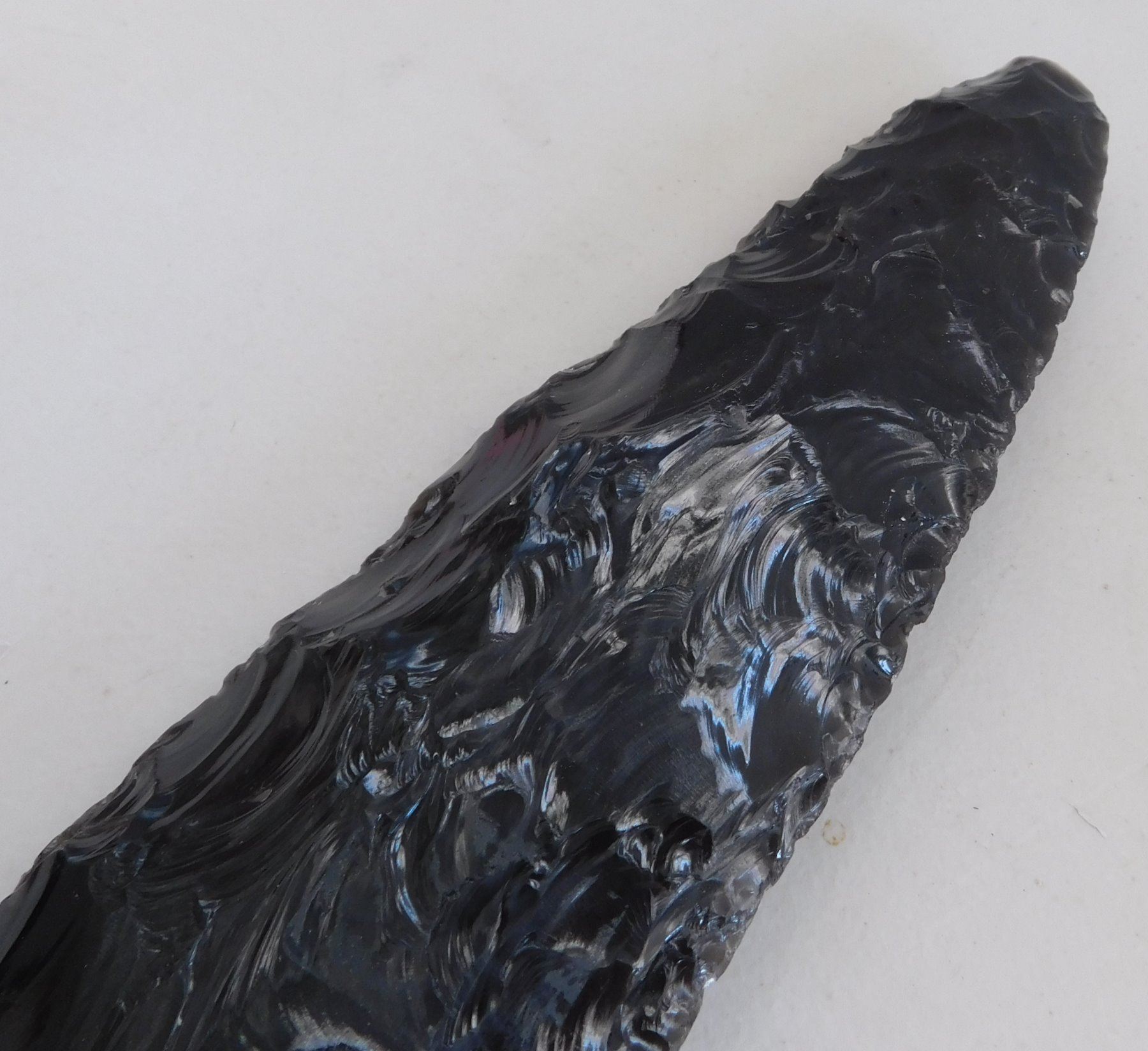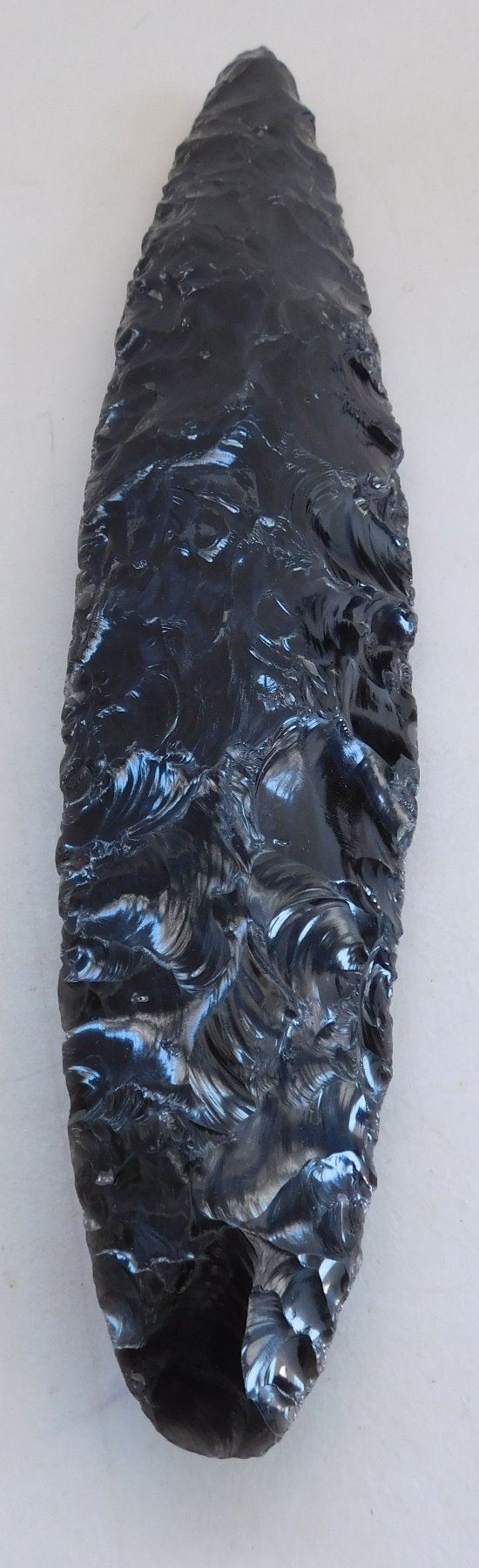 Obsidian Blade, archaic period. Made of obsidian stone, the item measures 15" x 2 3/4". Hupa, California. Large double-pointed treasure blade. Condition: Good, see images. Shipping: $35.50 w/insurance and signature.