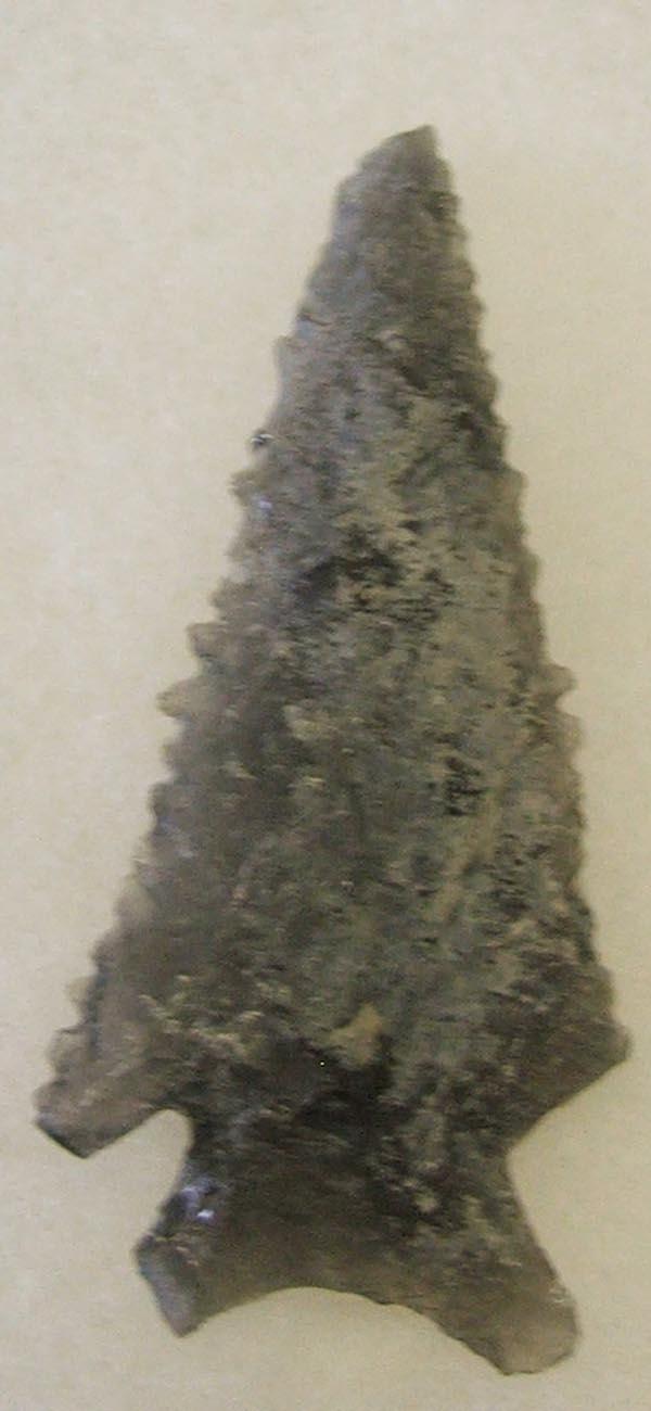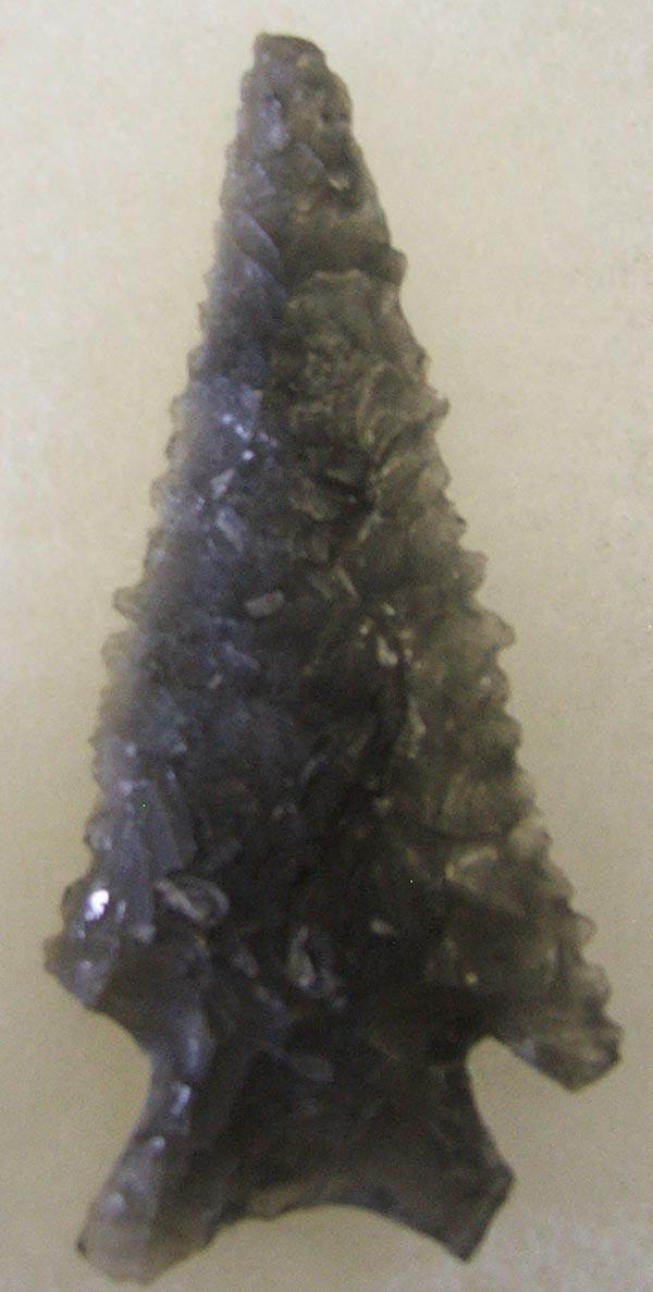 Obsidian Ola Culture Arrowhead from Oregon Desert. Measures 2''x0.75''. SHI $15.