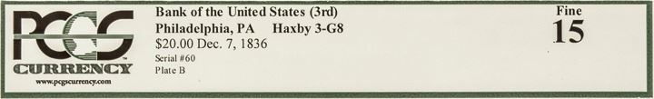 Obsolete Currency, Phila. PA. 3rd The Bank of the United States $20 PCGS F-15