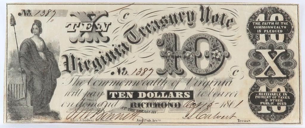 Obsolete Note: 1861 $10 State of Virginia - Treasury Note - CR4.