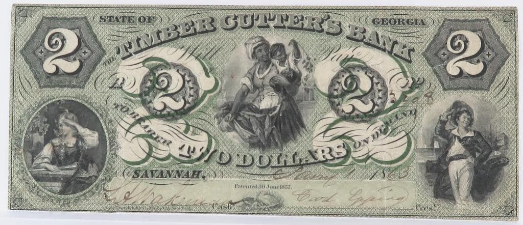 Obsolete Note: 1865 $2 Timber Cutter's Bank Savannah, Georgia.