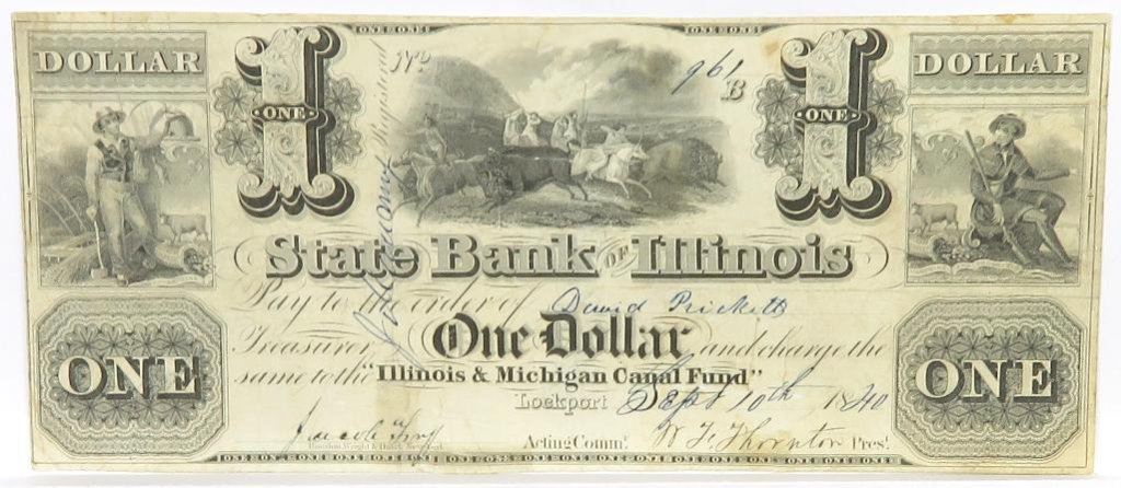 Obsolete Note: Lot of (3) Obsolete Notes includes 1840 $1, $2.50 $5 State Bank of Illinois Lockport - Revenue Bond Illinois Michigan Canal - IL40.