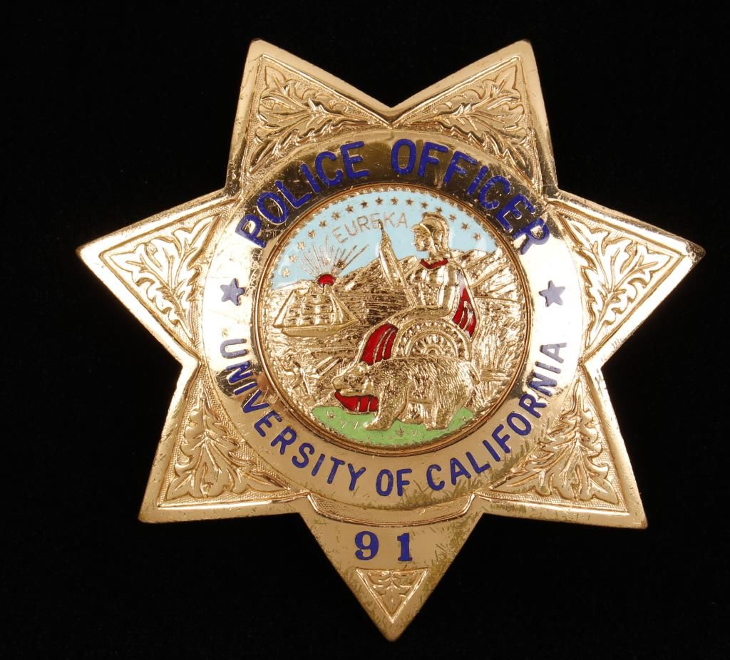 Officer Law Badge. Measures 2 3/4" in diameter. The reverse side is maker marked 'Entenmann Rovin Co Genuine Carltone Gold Pico Rivera Calif'. This is a seven pointed star. Two piece brass construction with enamel. Offered "as is", we don't guarantee the authenticity of this item, please do your research. All sales are final.
