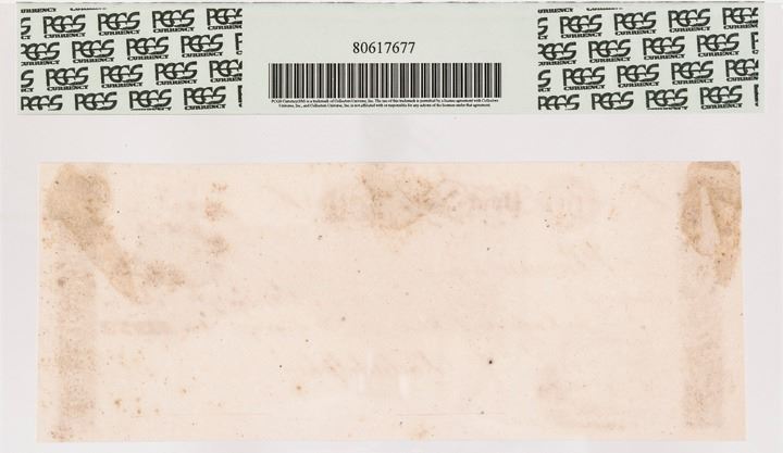 Haxby PA-436 Unlisted. PRF Rarity-8. A beautiful Proof, having two wonderful vignettes. The Stephen Girard’s Banking House was a solid and private concern, that eventually became a National Bank. Demure style by Toppan with a Sailing Ship at the lower left and an American Eagle at the upper right. Title at the right and scroll “FIFTY DOLLARS” at the left. Fine slits in the signatures, some prior mount traces on the blank reverse, having wide top and side margins from its positioning at the top of the original sheet. This extremely rare Proof note from the ABN Sale, being the “A” position Proof off of the four note sheet (part of lot 1740).