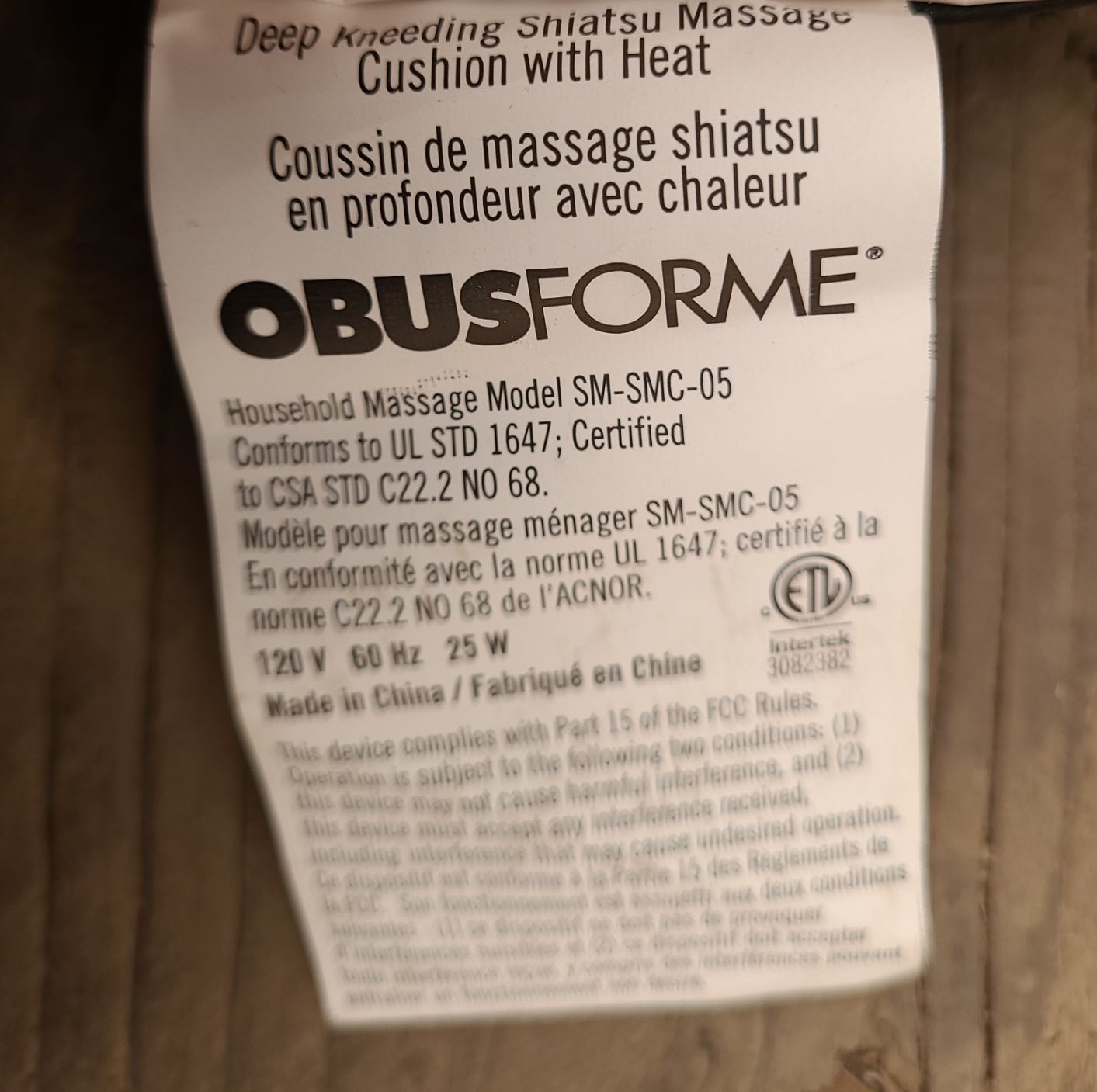 Obus Forme Shiatsu Massage/ Heat Cushion Model SM-SMC-05