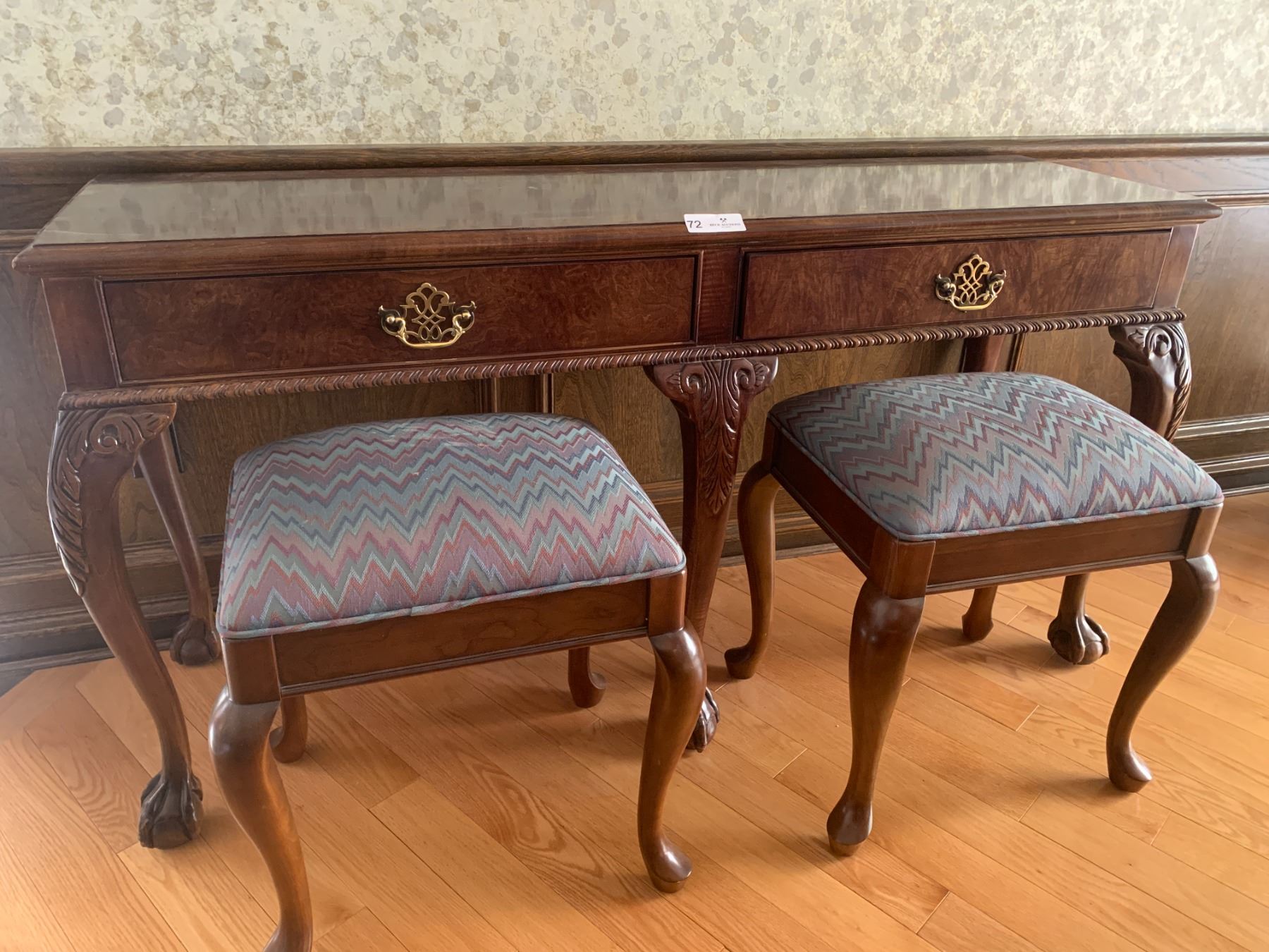 Occasional Side Table With Drawers and Benches 53" Long X 16" Wide X 29" Tall