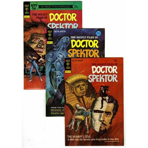 <B>Occult Files of Doctor Spektor - File Copy Group (Gold Key/Whitman, 1973-82) Condition: Average NM-.</B></I> Includes #3, 4, 5, 8, 9, 10, #11 (first appearance of Spektor as Werewolf), 13, 21, and #25 (last issue, line drawn cover). Jesse Santos art. Approximate Overstreet value for group = $150. <BR><BR><b>Shipping:</b> Comics - Unslabbed (<a target="_blank" href="http://www.heritageauctions.com/common/shipping.php">view shipping information</a>)