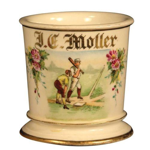 Occupational shaving mug for J.E. Moller, baseball player. No chips or cracks, excellent condition.