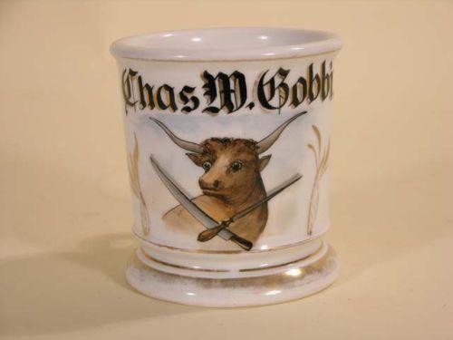 Occupational shaving mug - butcher/Chas. W. Gobbie (marked on bottom not legible/small chip on base).