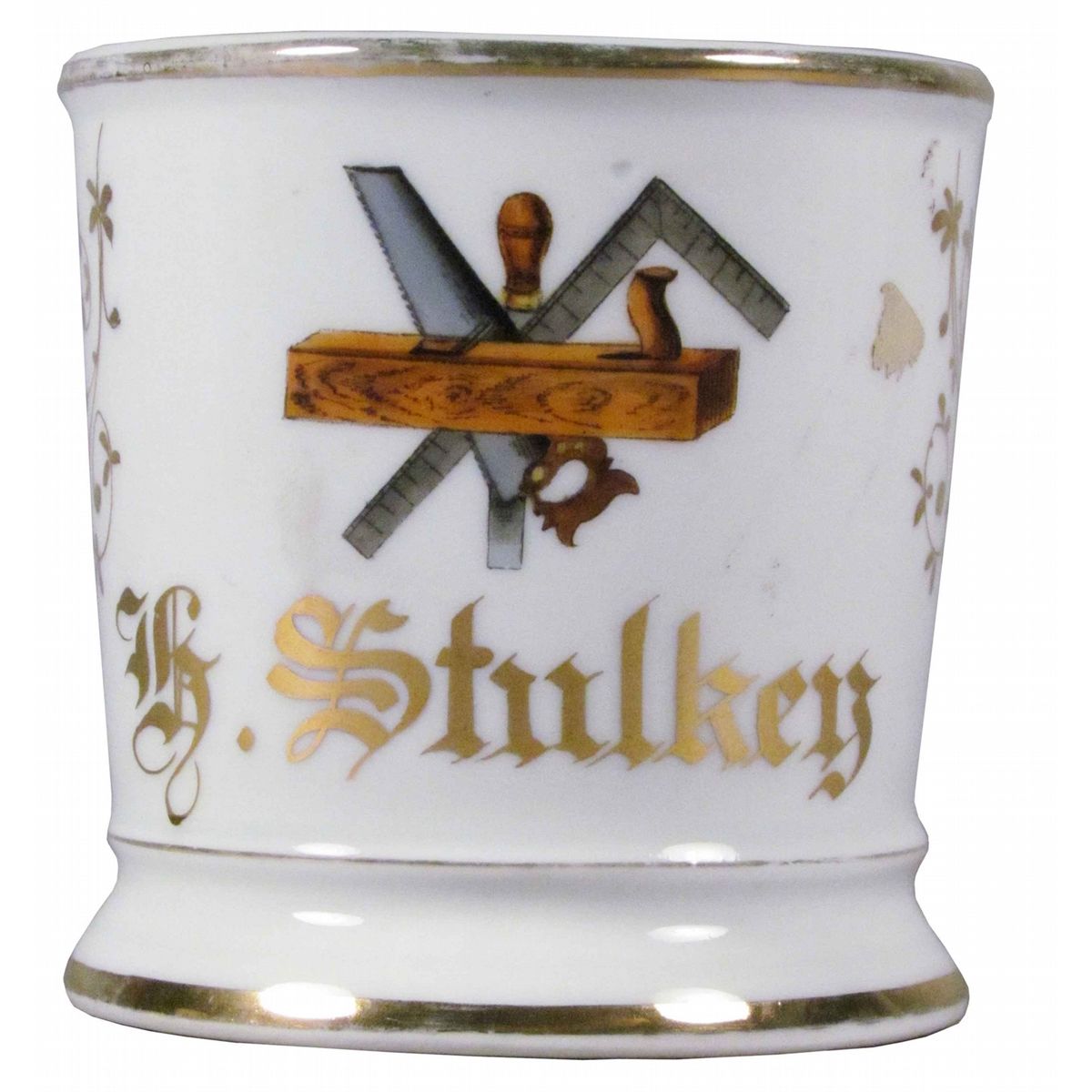 Occupational Shaving Mug, Carpenter Motif for G. Stulkey. No chips or cracks.