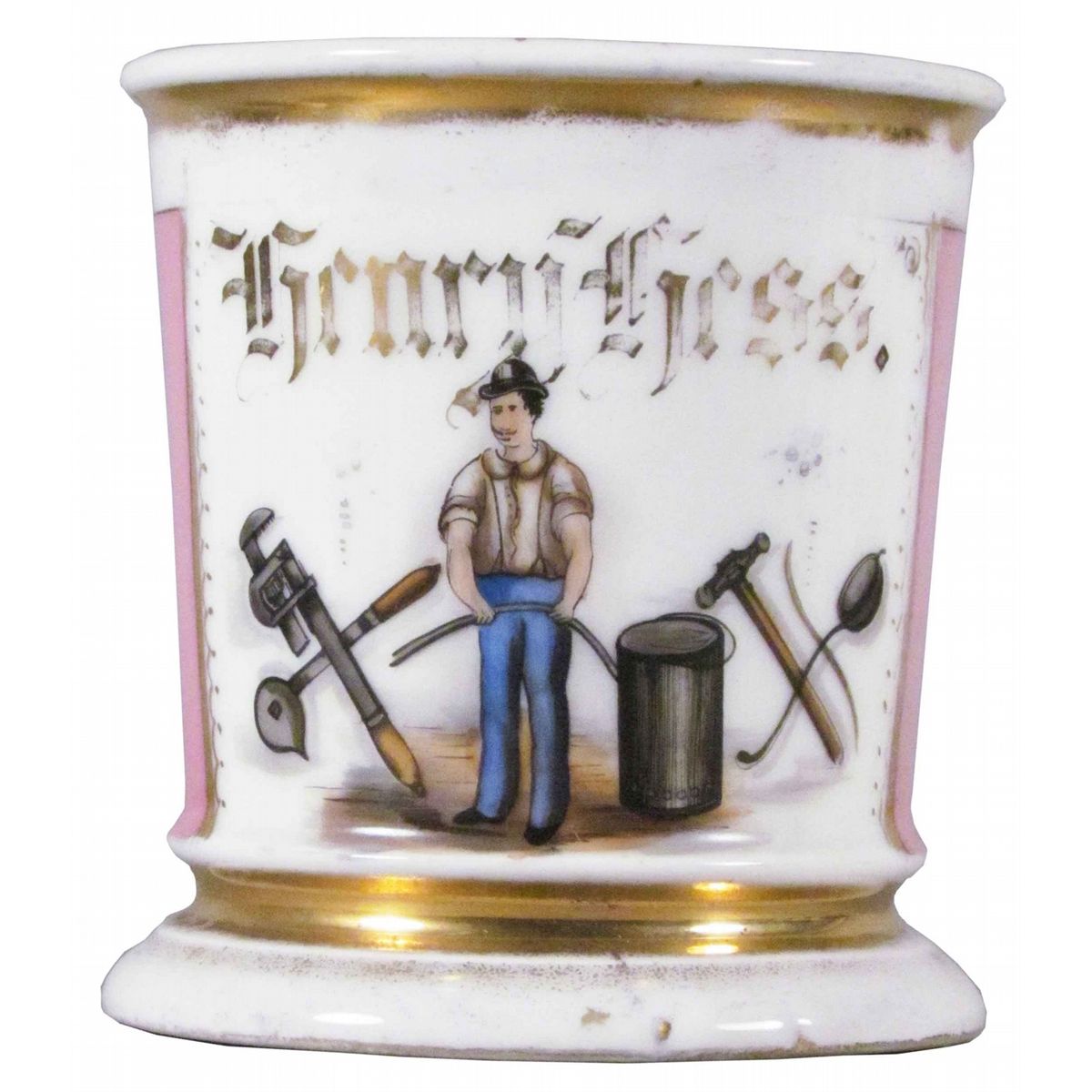 Occupational Shaving Mug, Plumber Motif for Henry Hess. No chips or cracks.
