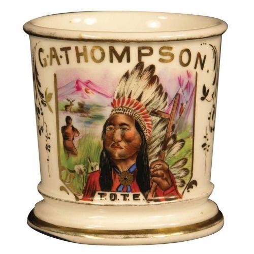 Occupational shaving mug for G.A. Thompson, T.O.T.E. depicting Native American. Stamped France. No chips or cracks, excellent condition.