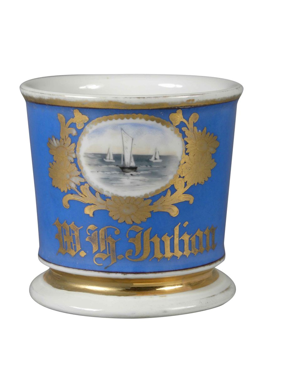 Occupational Shaving Mug depicting three sail boats for W.H. Julian. No chips or cracks, excellent condition.