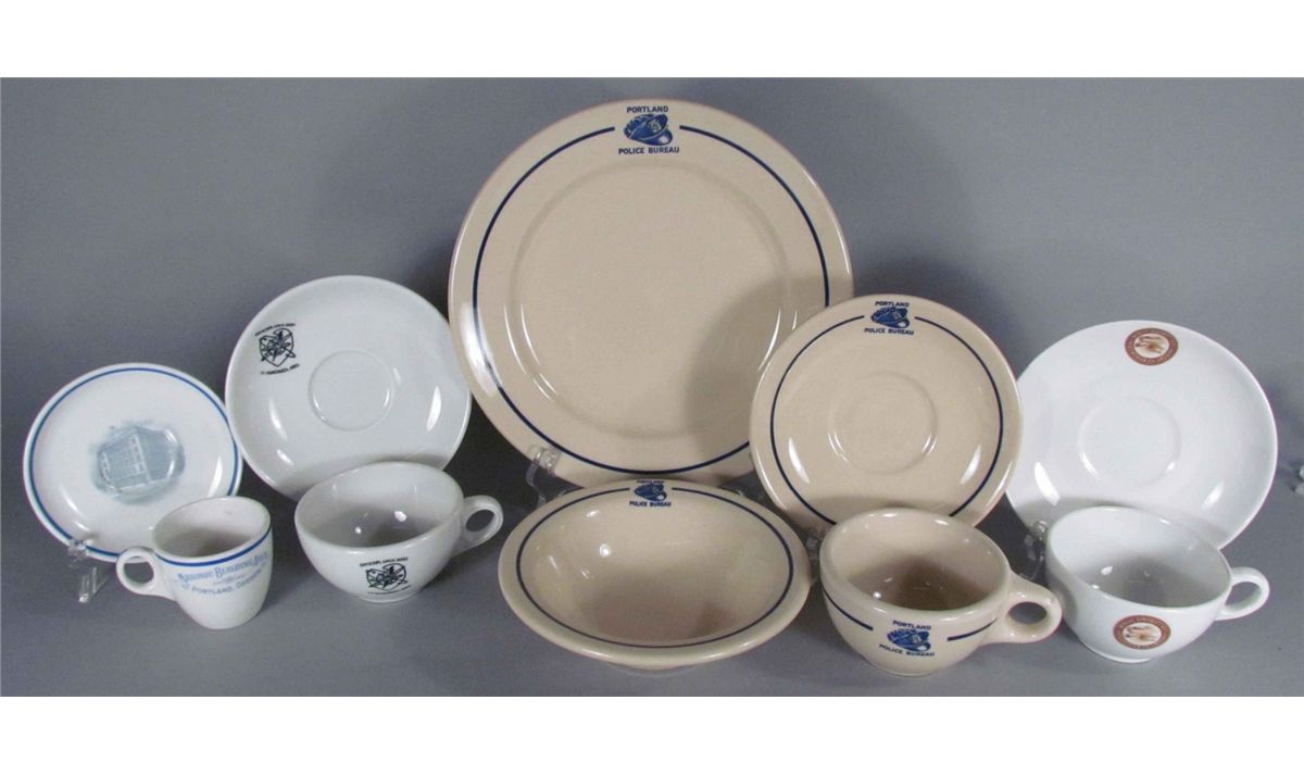 Occupational and Fraternal Restaurant Ware. Portland Police Bureau, Officer's Open Mess, School District, Masonic Bldg. Assn.. 10 Pieces. No chips or cracks, excellent condition. Large plate measures 9 1/2 inch diameter.