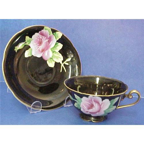 Art Deco Vintage Cup & saucer set - Made in occupied Japan - Gorgeous lush rose on a black background - BEAUTIFUL! - Very good condition - Free of chips, cracks or repairs - Buyer to pay 7.00 for shipping and that includes insurance - Thank You very much for looking!PLEASE NOTE THE SHADOWS THAT YOU see on this set - it is only reflections from the lights, this set is perfectly high gloss black.