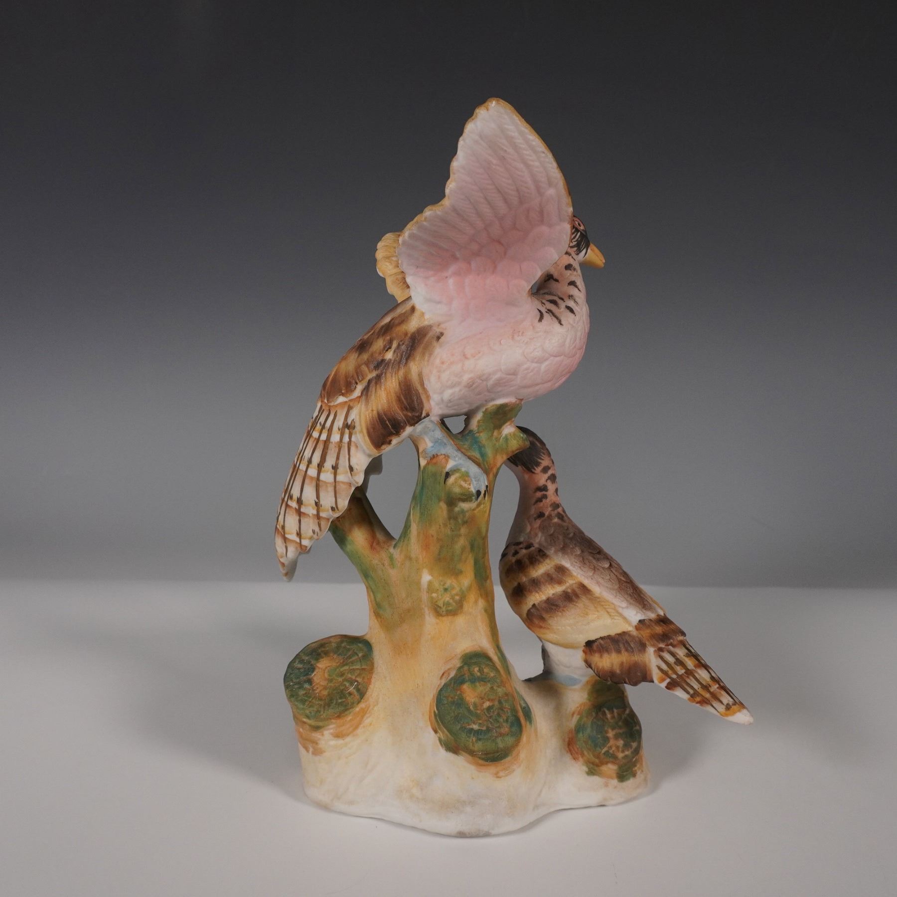 Vintage porcelain figurine depicting two beautifully modeled birds, crafted and hand-painted during the Occupied Japan era (1945–1952). This collectible piece features detailed plumage and expressive colors, capturing naturalistic poses with intricate feather detailing. The base is marked clearly with the Occupied Japan stamp, adding historical significance and enhancing its collectible appeal.