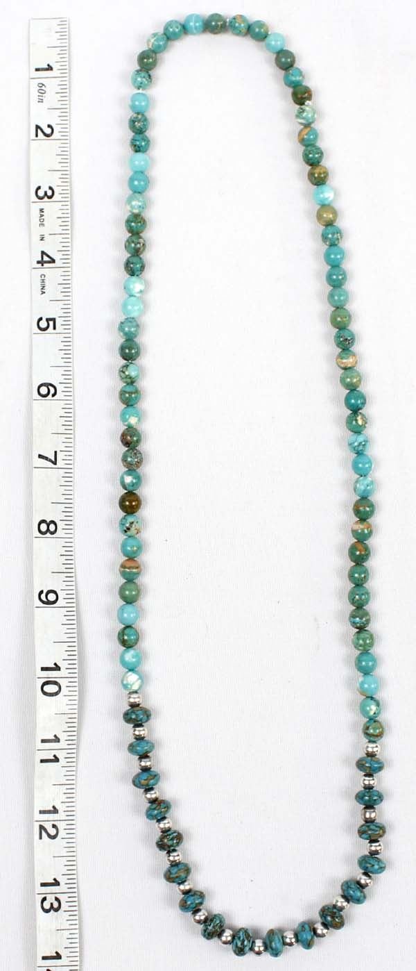 Ocean Jasper and Silvertone Bead Necklace, measures 28''L end to end, beautiful colors