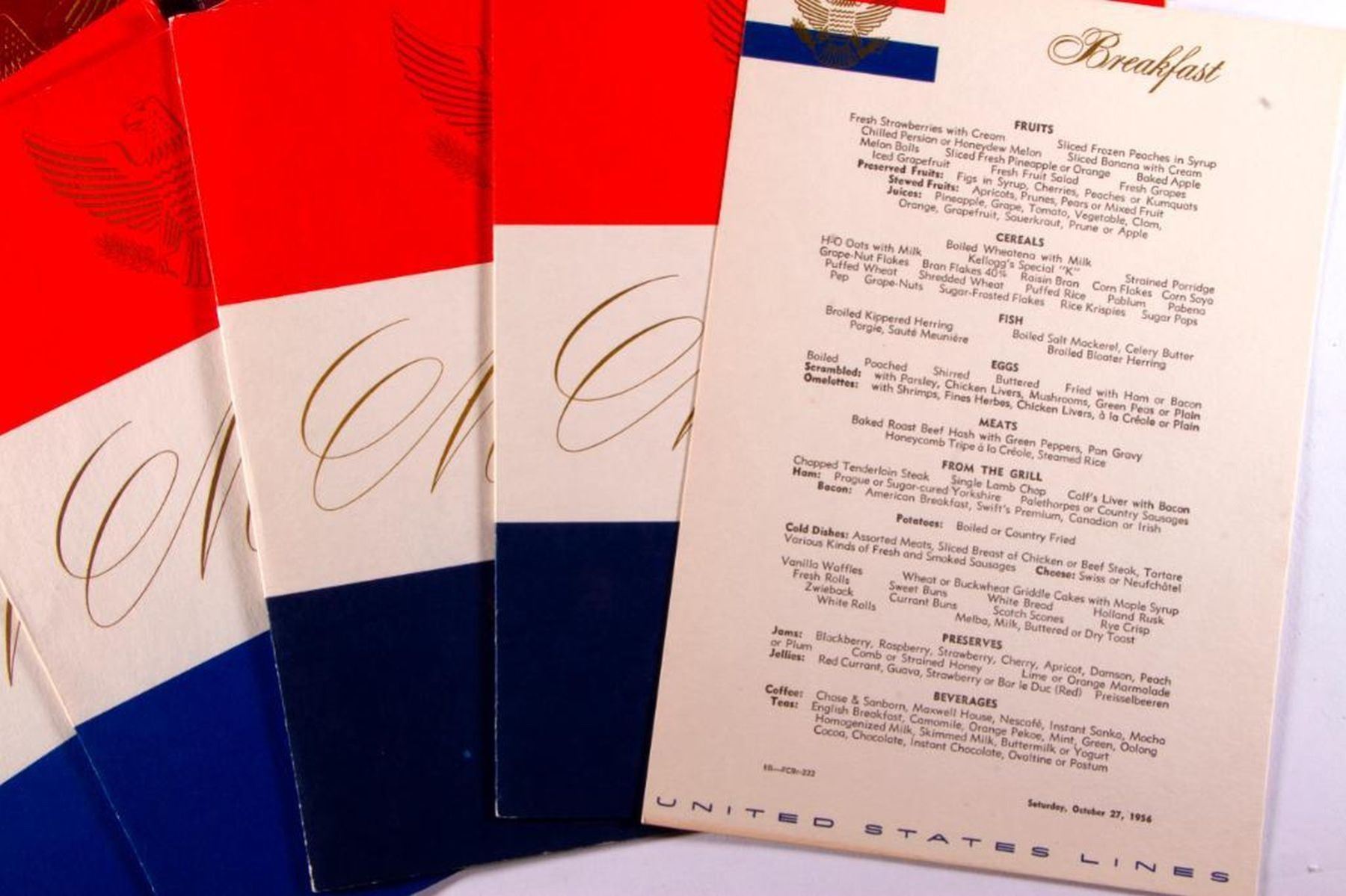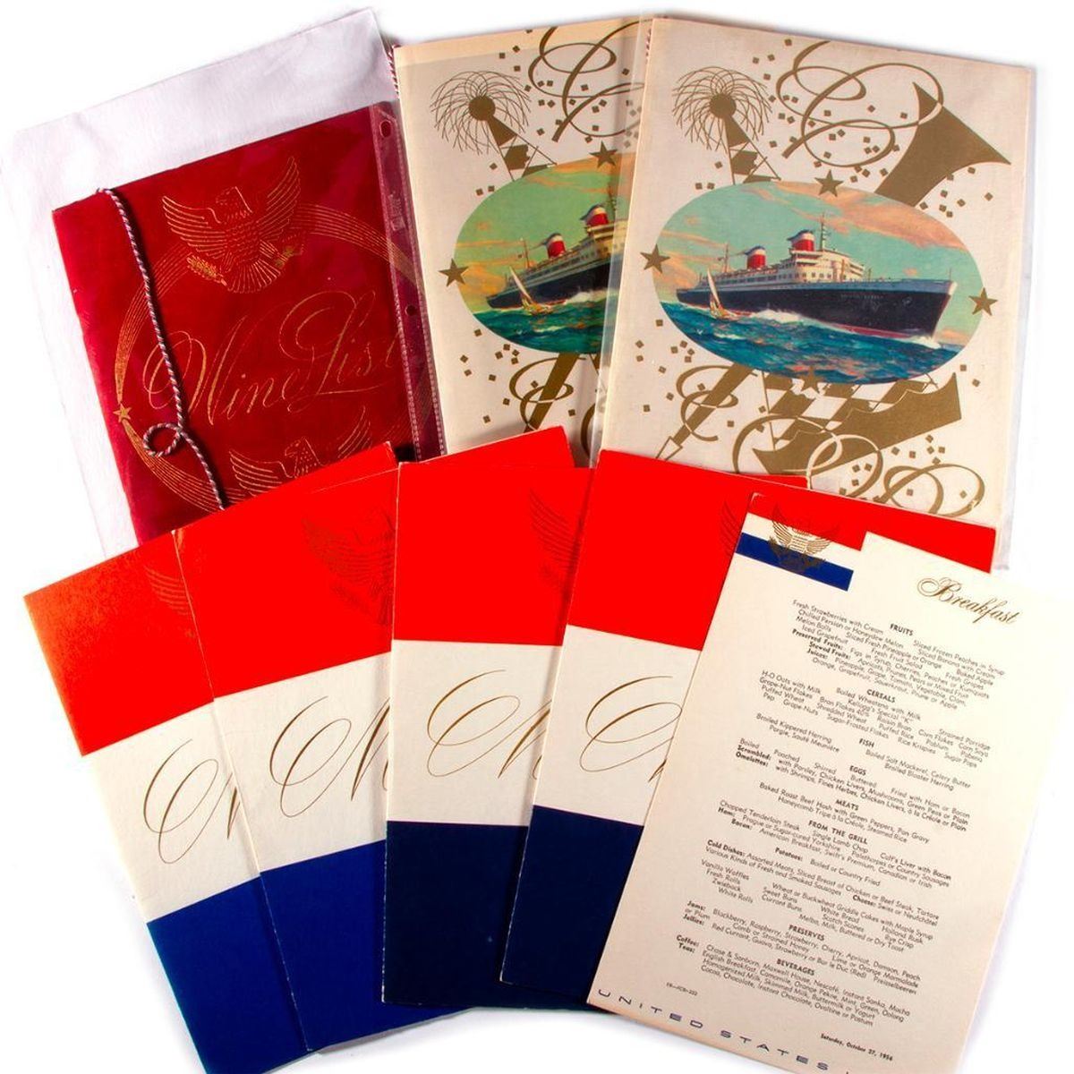 EIGHT (8) SS UNITED STATES LINES CRUISE MENU'S