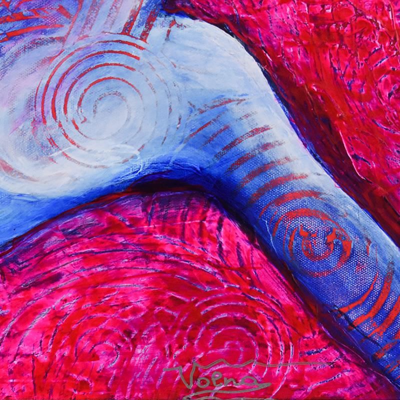 "Ocean of Love" is an original acrylic painting on canvas by Nadia Volna, hand signed by the artist. This piece is painted with light-reactive black light paint that reveals brilliant colors when viewed under incandescent light. This piece comes with a bl