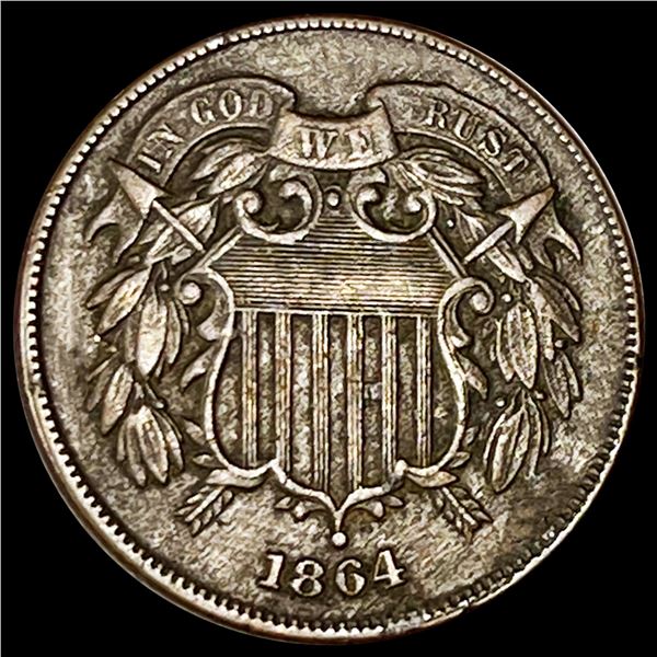 1864 Lg Motto Two Cent Piece NEARLY UNCIRCULATED