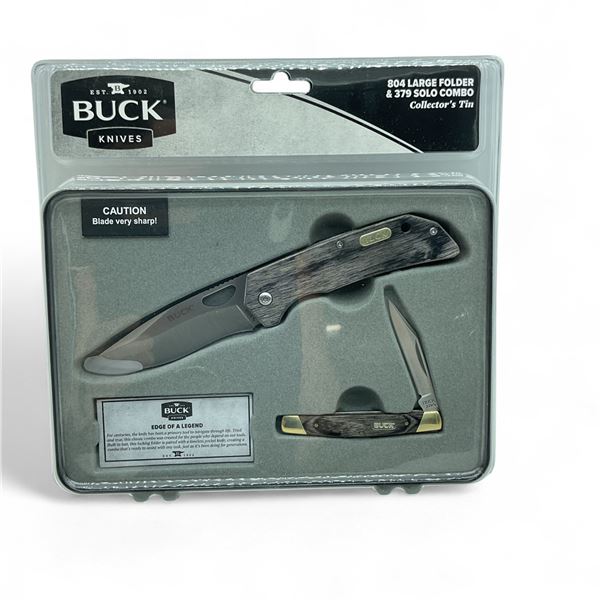 Buck Knives 804 Large Folder and 379 Solo Combo Knives with Collectors Tin, New18 - Buck Knives 804 Large Folder and 379 Solo Combo Knives with Collectors Tin, New