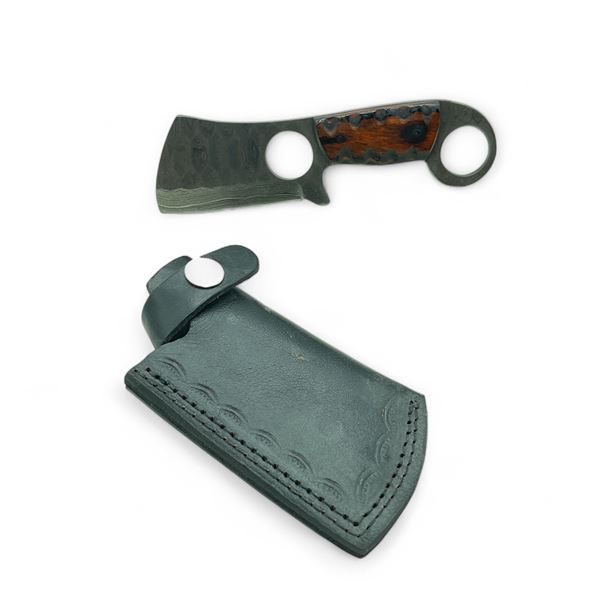 Fixed 2.75" Damascus Blade Mini Cleaver Knife with Leather Sheath20 - Fixed 2.75" Damascus Blade Mini Cleaver Knife with Leather Sheath