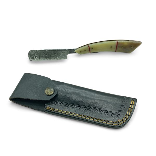 Folding 3" Damascus Blade Razor with Leather Sheath21 - Folding 3" Damascus Blade Razor with Leather Sheath