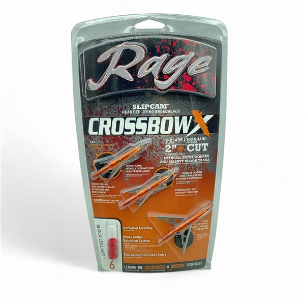 Rage Crossbow X SlipCam Rear Deploying Broadheads, 100 Grain, New27 - Rage Crossbow X SlipCam Rear Deploying Broadheads, 100 Grain, New