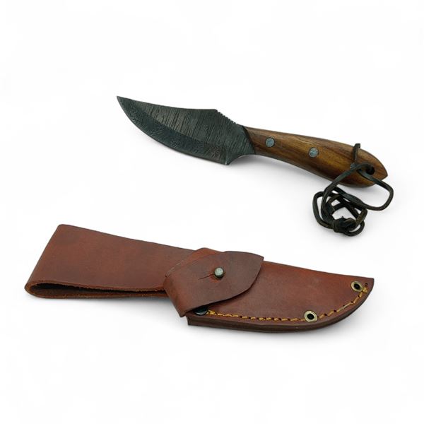 Fixed 3.5" Damascus Blade Knife with Leather Sheath32 - Fixed 3.5" Damascus Blade Knife with Leather Sheath